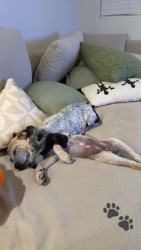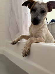 Penny was rescued from the side of the road and was very timid of us at first. Now she is the most loving playful girl. She loves going to the dog park and meeting new doggy friends. We love her so much