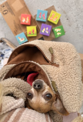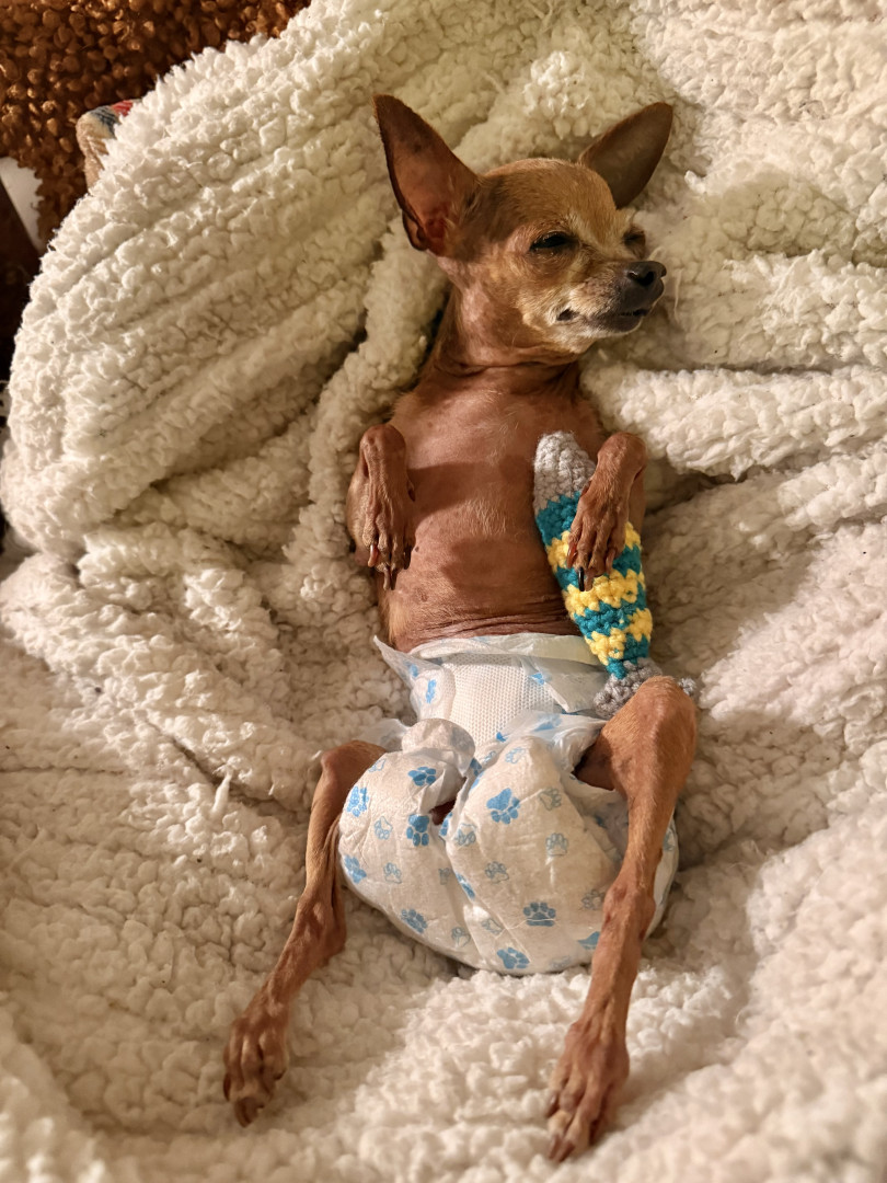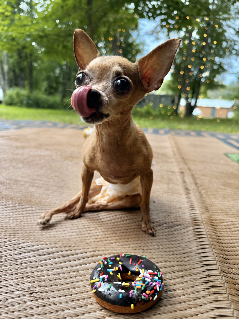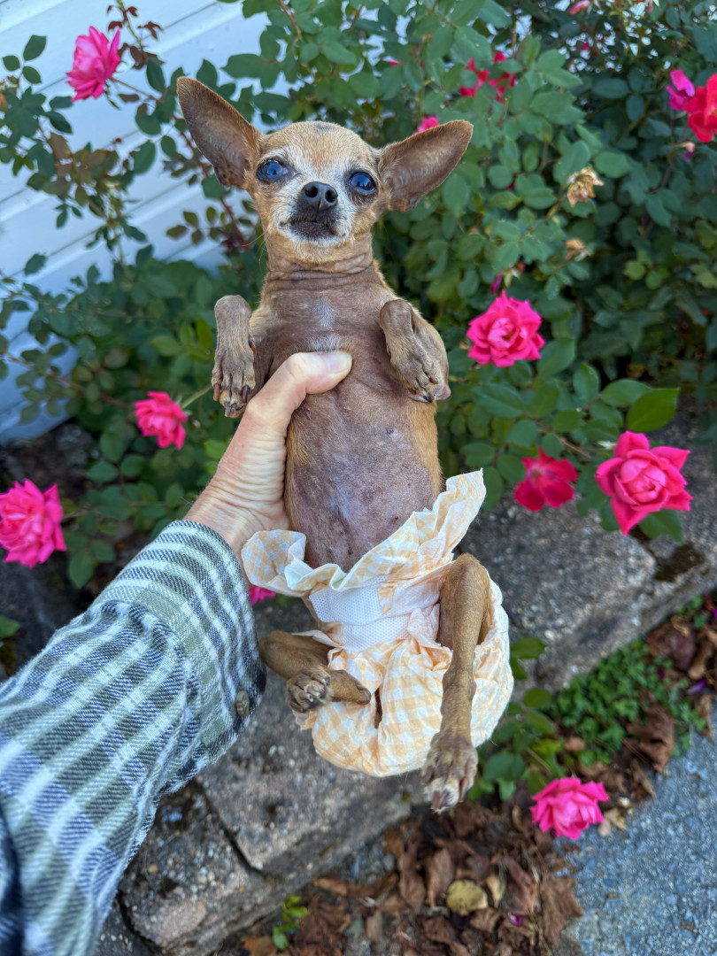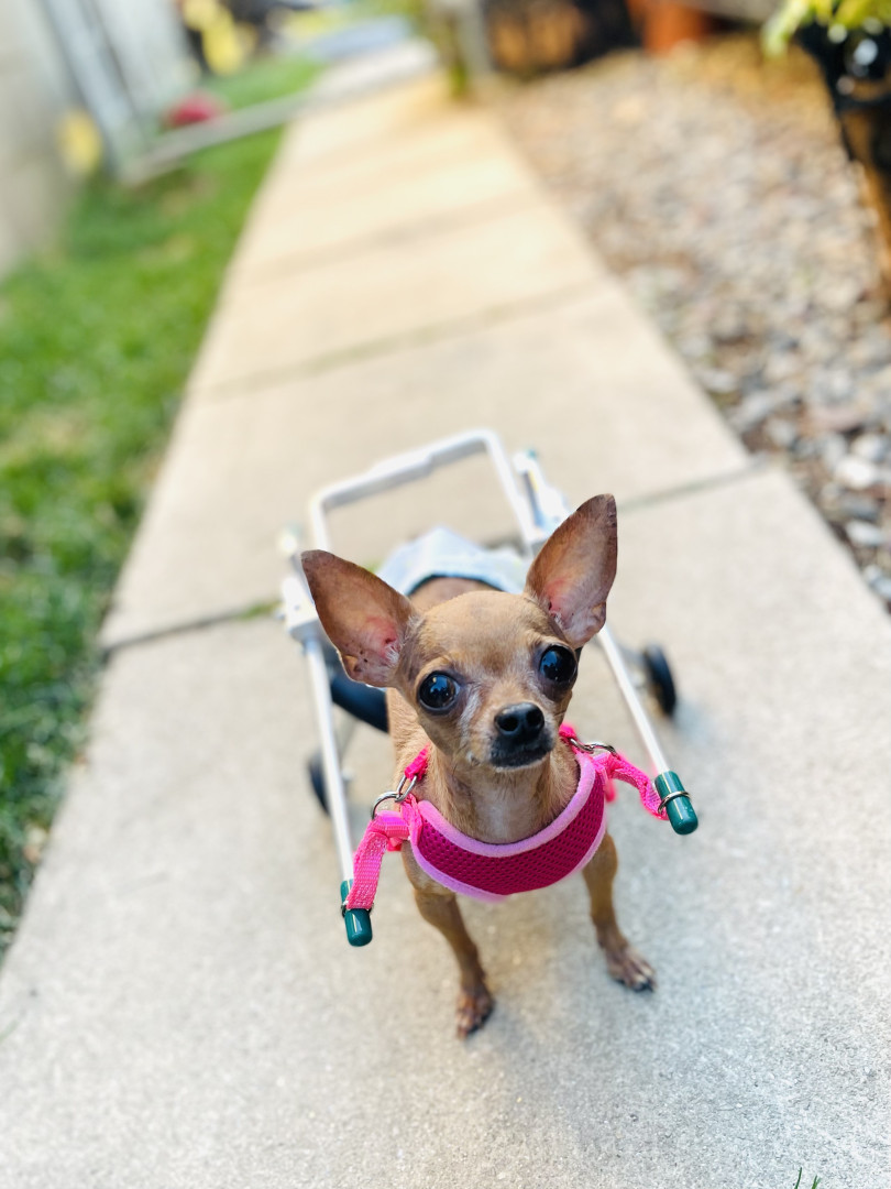 Receive Text UpdatesKaren is only 2.8lbs and her favorite toys are cat toys! She loves to play rough with us, and “attack” her tiny toys while she growls! Her wheelchair, although not a toy allows her the freedom to run, play, and socialize with people and other dogs. Her personality is full of love and joy! Karen loves all seafood treats, fresh watermelon, cucumbers and pizza crust!