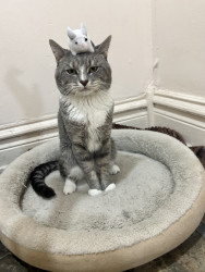 He is a very active and loving cat with a big appetite for treats