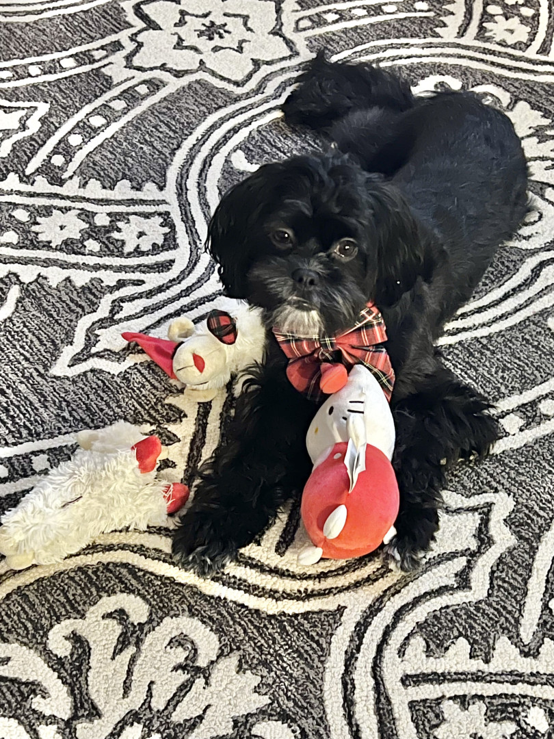 Pepper loves all types of toys. She loves her Lammy, Hello Kitty, Football, Baseball, which she loves to fetch and chew. She’s truly versatile. Let’s not forget how she loves to nibble on my hands! As far as treats, she loves them all, beef or chicken, hard or soft, but her favorite are the chicken apple sausage treats.