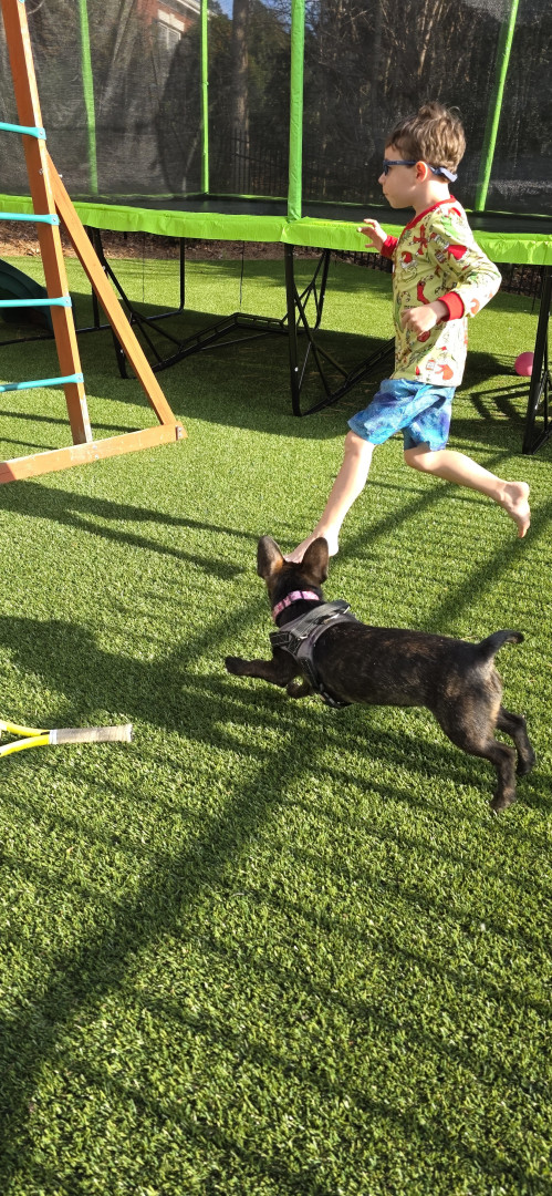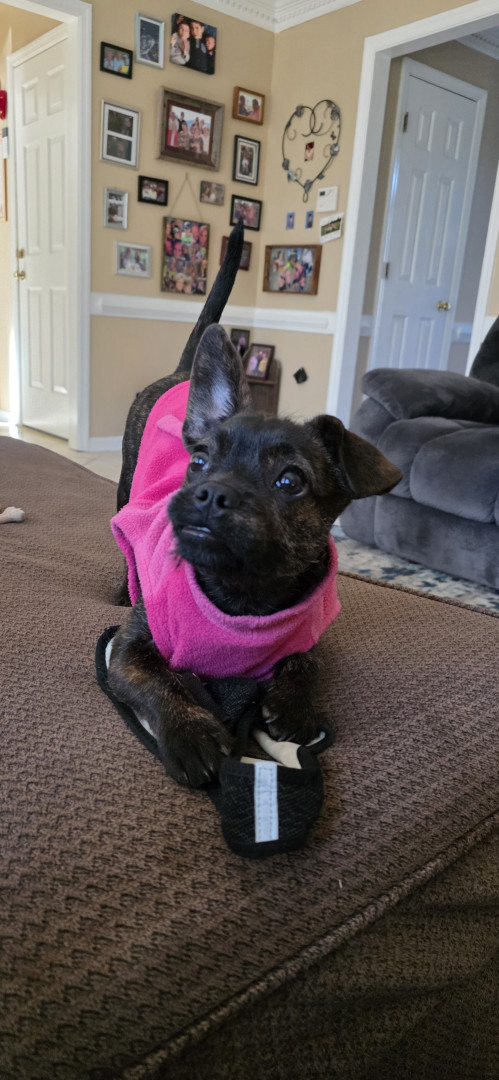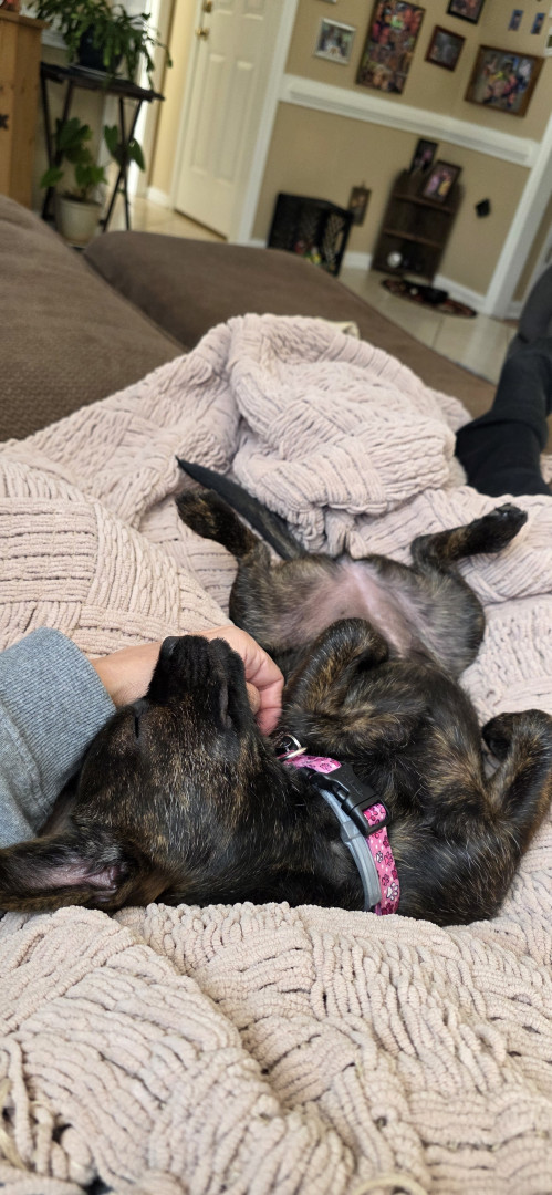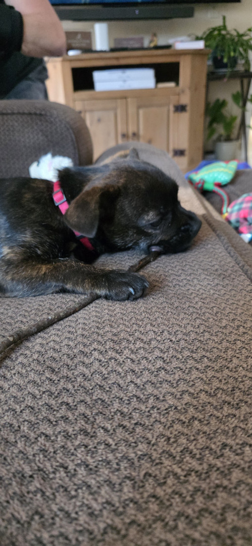 Peppakorn is a sweet, smart, active and cuddly dog. She hasn't met a dog she doesn't like big or small. Loves to play and loves to nap. She is everything you look for in a dog and look forward to going through her life with her.