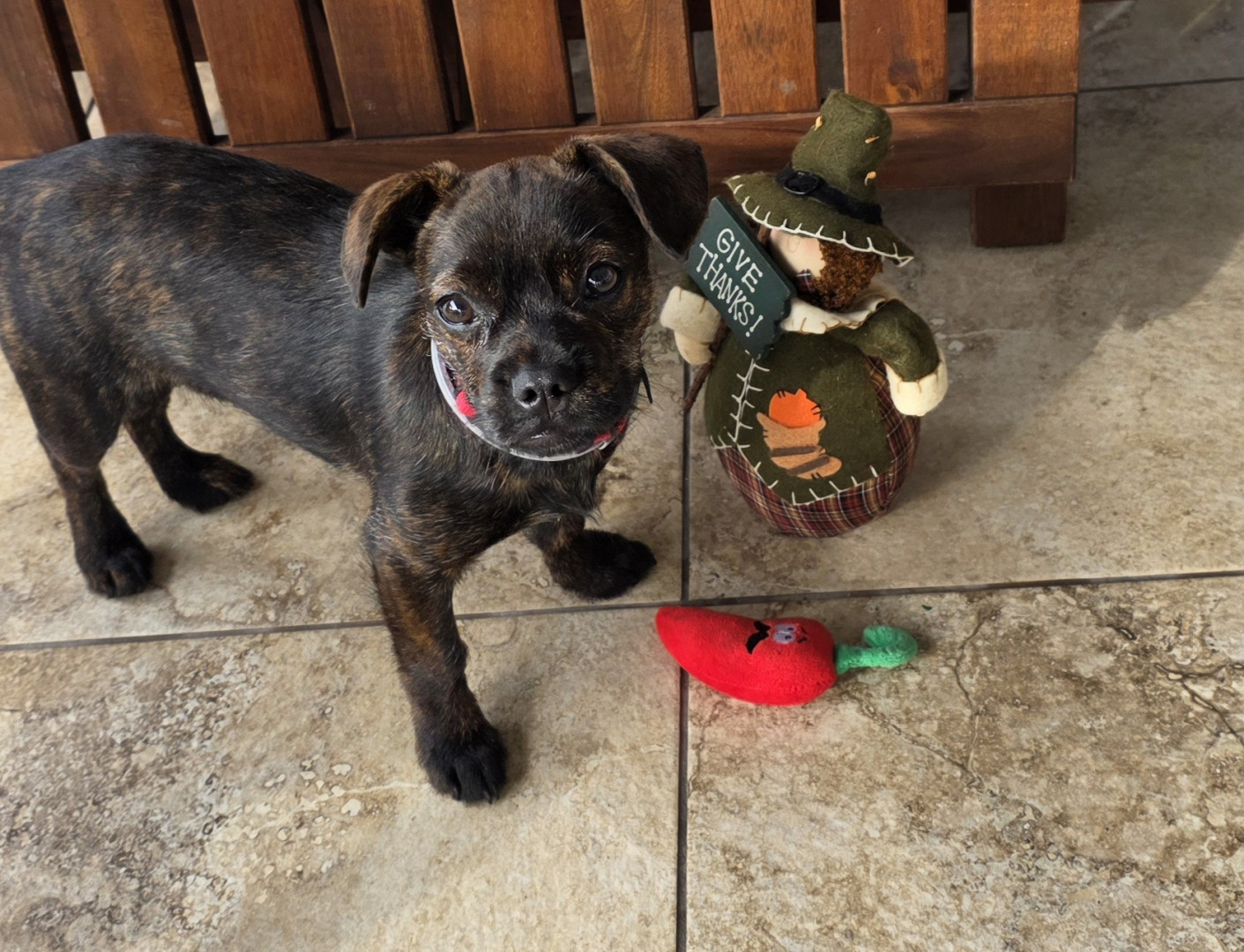 We adopted Peppakorn from a rescue a little more than 5 weeks ago. She was 4 months old. Smartest, silliest puppy there is.