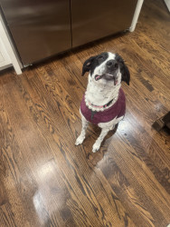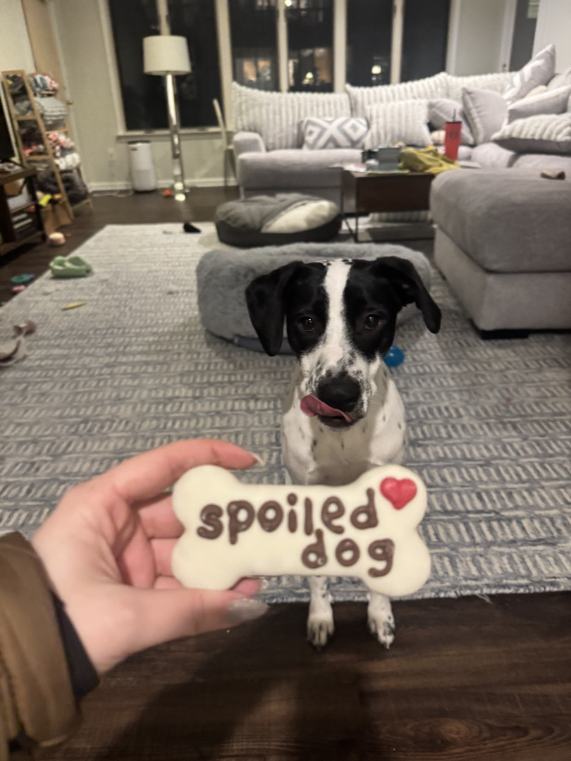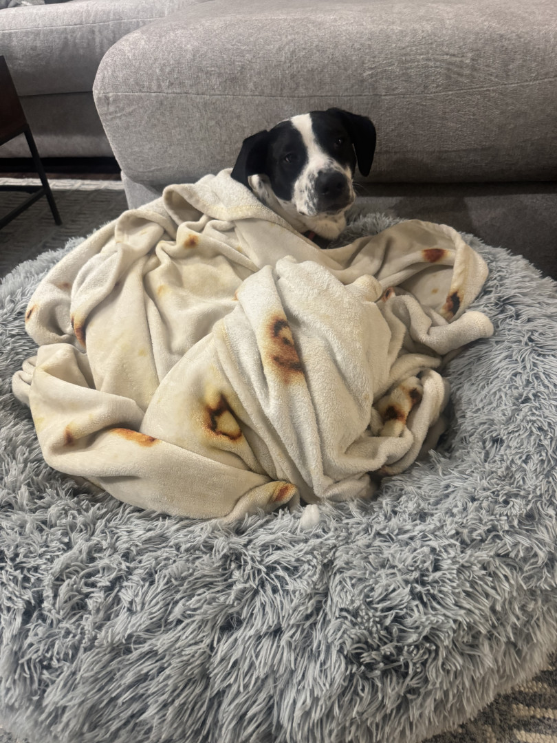 Pepper is a fun loving puppy who loves to be snuggled up in her blankets and a good treat.