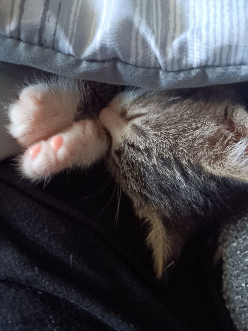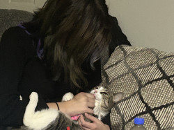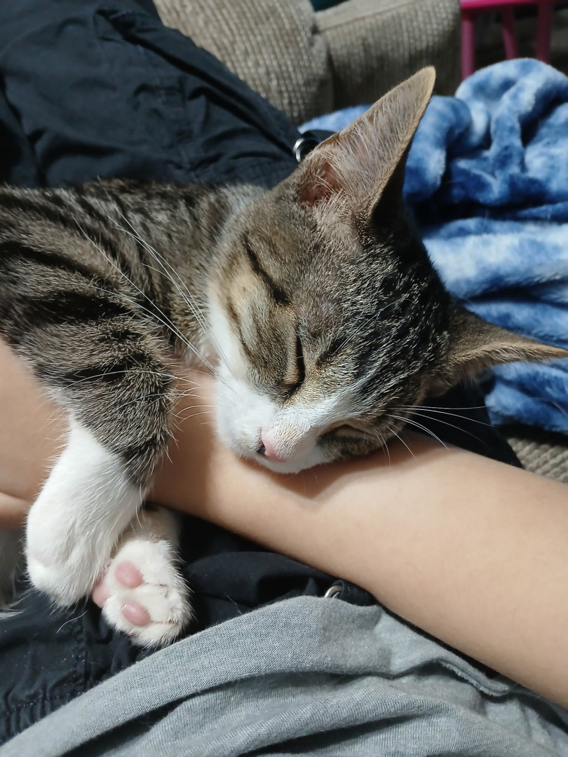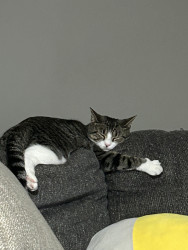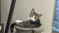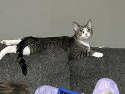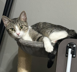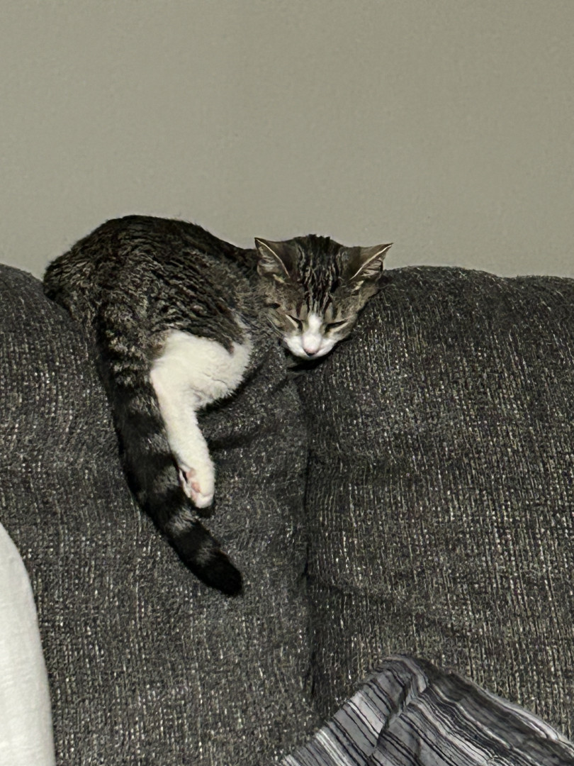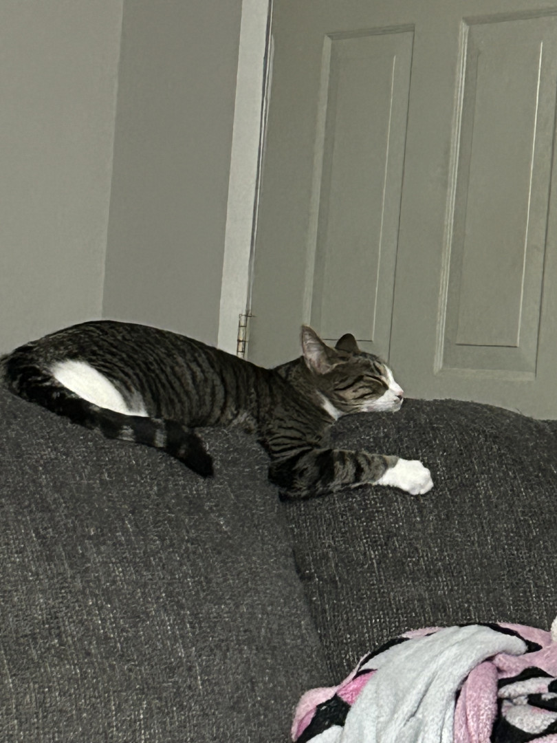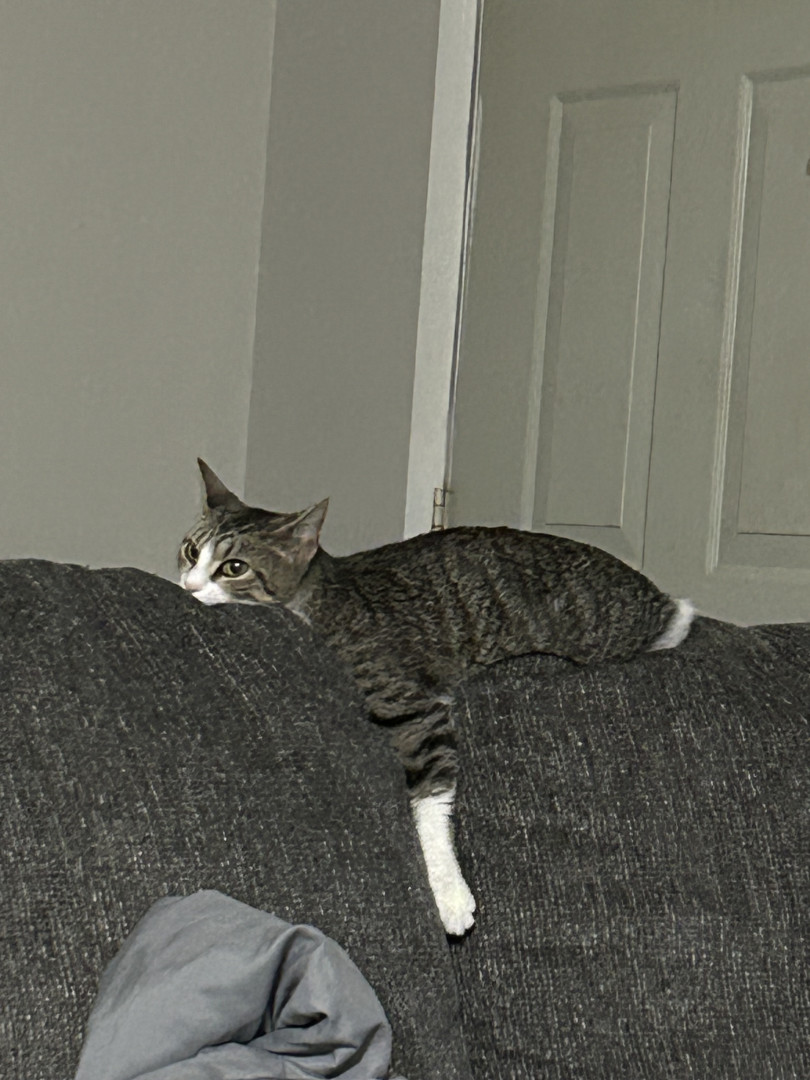 Pepper is a sweet, cuddly girl. She has claimed the back of the couch as hers, to fulfill her love of sleeping in the silliest positions.