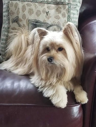 Pepper was a rescue after her owner passed. She is a lover, happy, tail wagging, belly rub loving girl. She just turned 12.