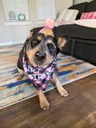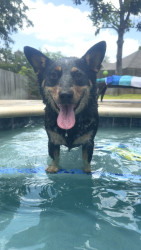 Pepper is the smartest, most talented dog I’ve ever had. She has the personality of a child (fun and spunky) and the mind of an adult (very intelligent). Pepper is a water dog as much as she is a land dog. We can play all day at the pool/waterpark or throw the ball around in the backyard. She always wants to be involved and is very intuitive with others around her. She will give you the best cuddles, sleeping at your feet to keep you warm or back to back to make sure you feel safe.