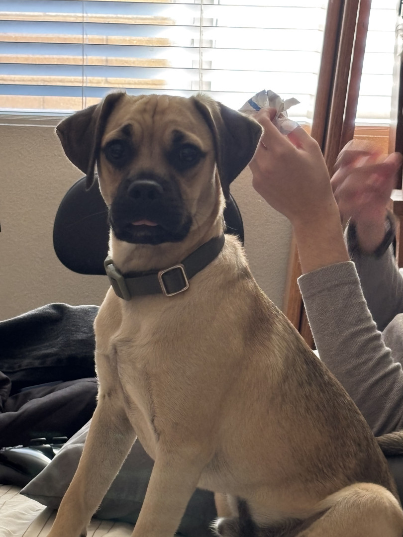 Peppers favorite toys are balls and squeaky toys and his favorite treats are anything chicken flavored