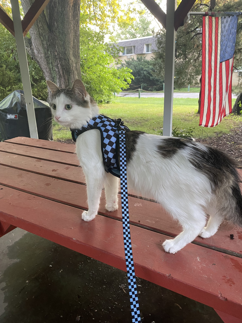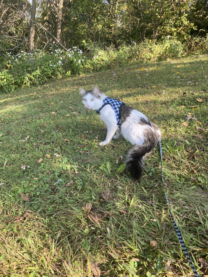 Pepper should be America’s favorite for obviously his coating and his handsome face structure, but because of his personality. Pepper isnt just any boy cat, he is a protector, hes a big brother to his little sis hazel, he does everything he possibly can to give you love and joy even on your darkest days (once he knows you lol). He also loves loves loves going to the park in his backpack or on walks ( he loves to roll in the grass and dust along with eating leaves he shouldn’t lol)