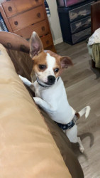2 years old Doberman pinscher mixed very lovable and alert dog loves to play outside with balls love you lounge around and loves to eat