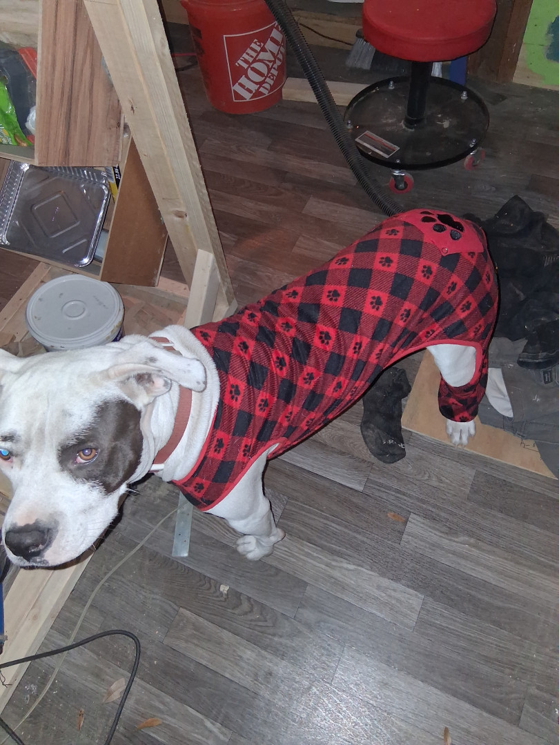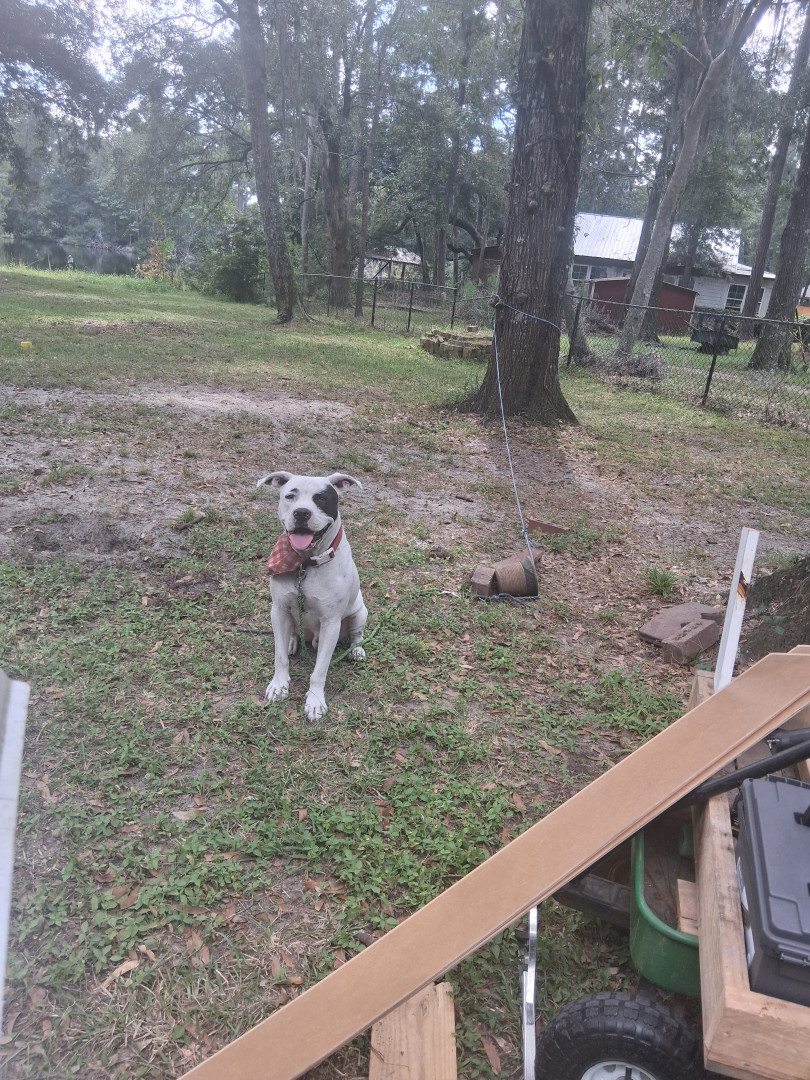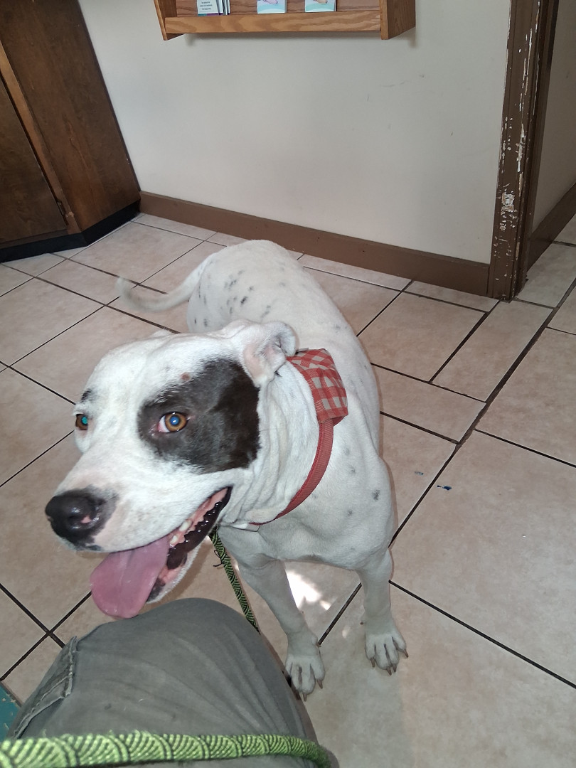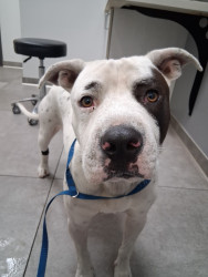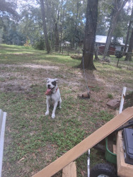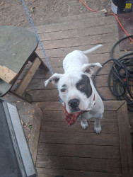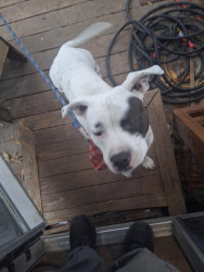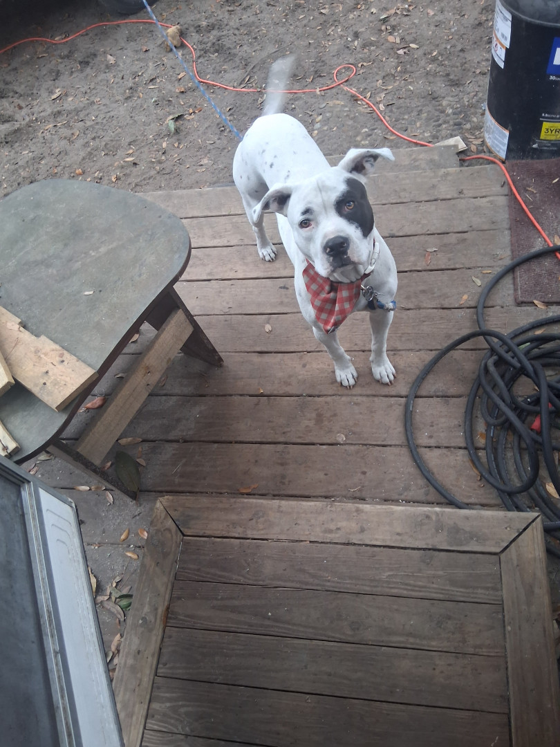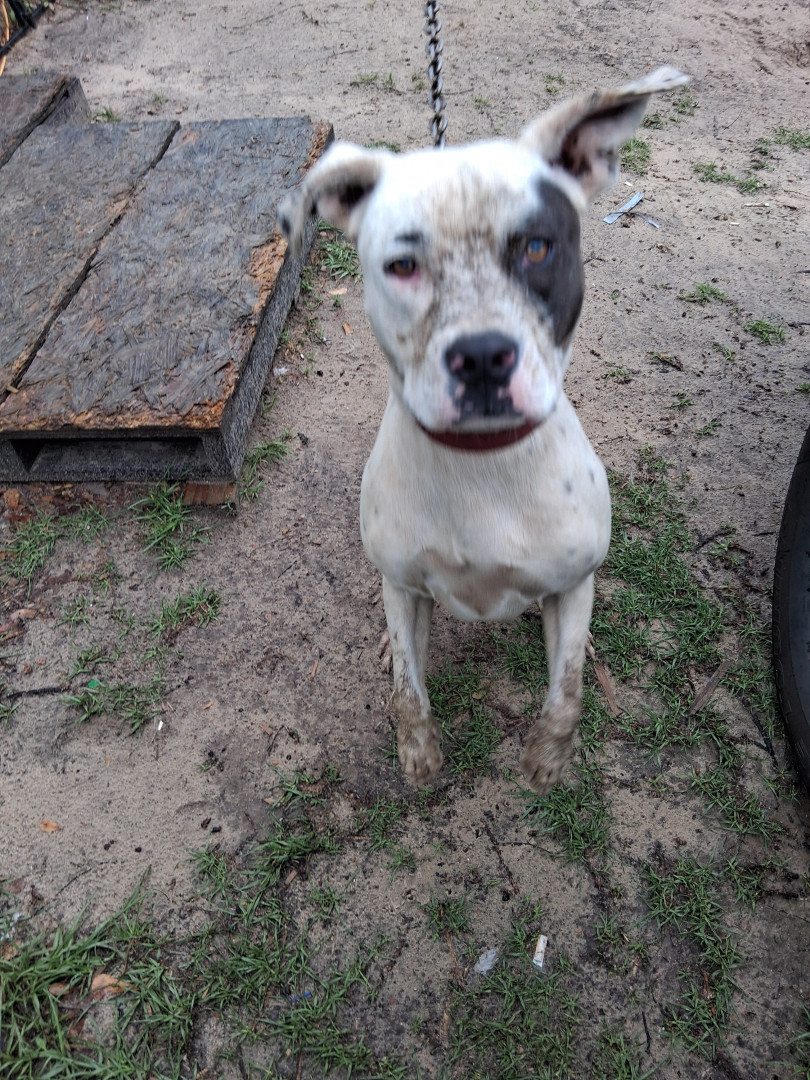 An American Bulldog whos never met anyone he doesn't like or anyone that doesn't like him,his favorite snack is caramel fiddle faddl
