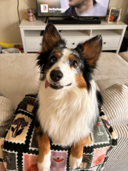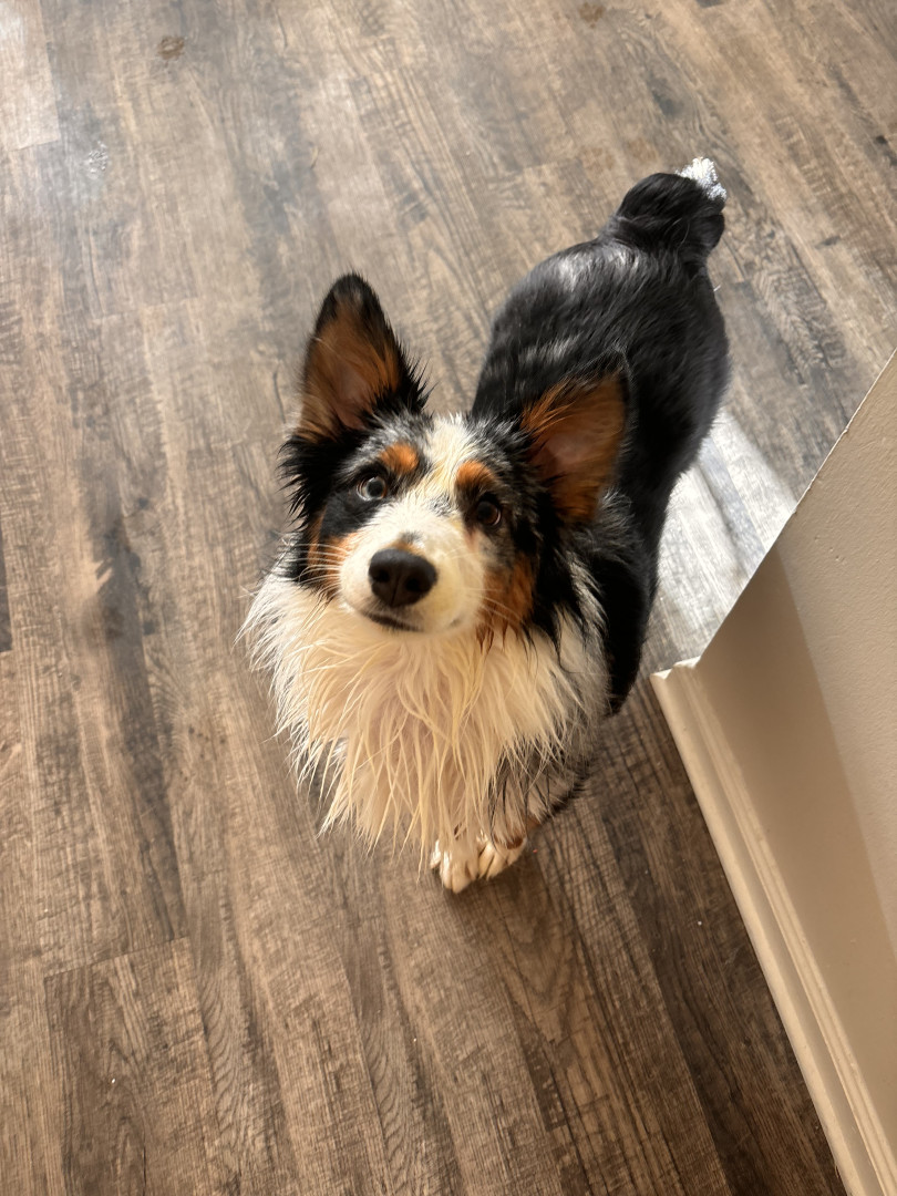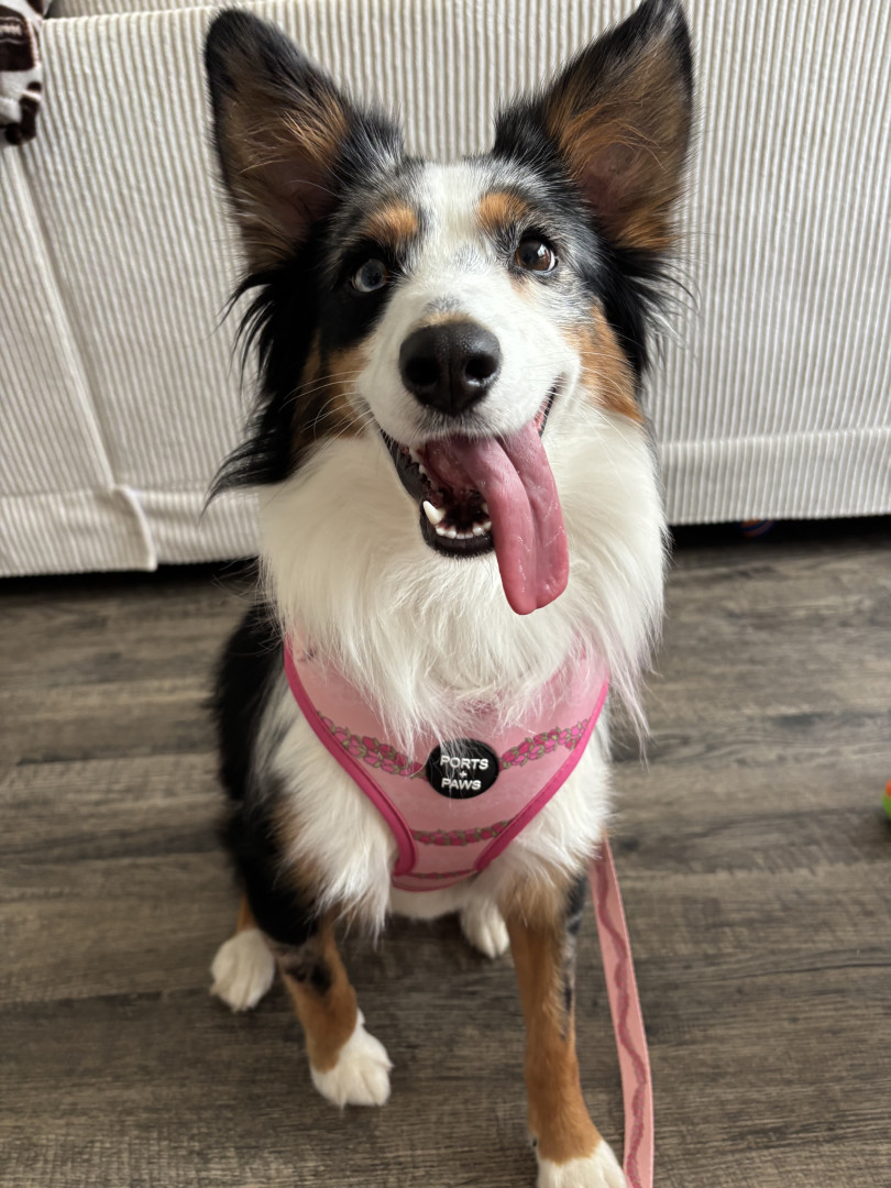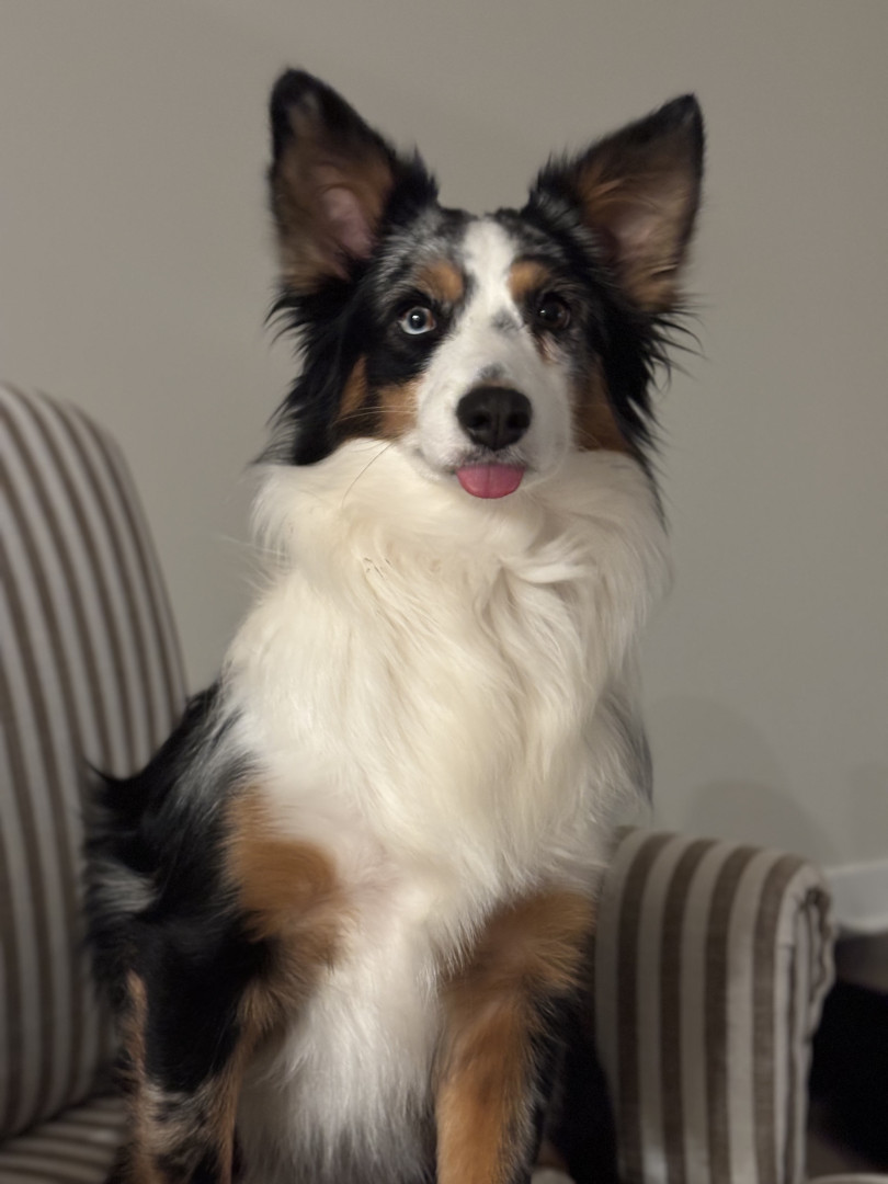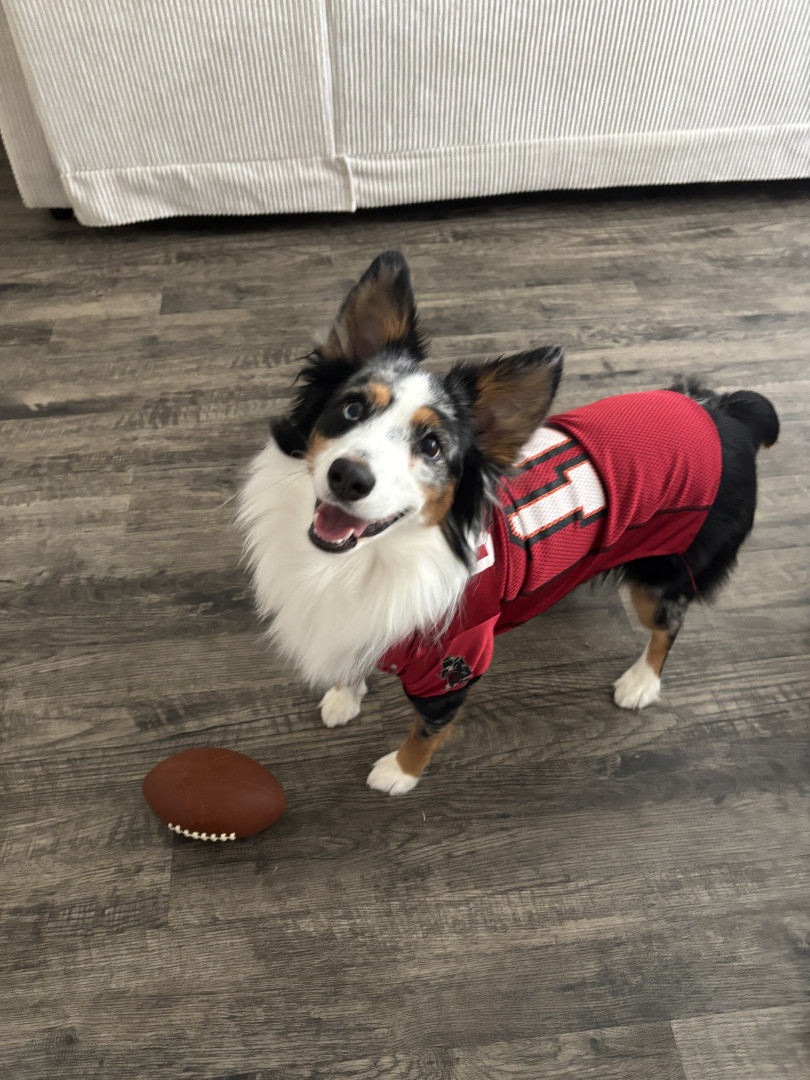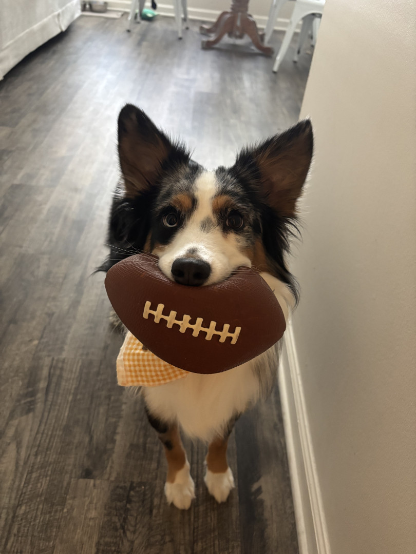 Peyton is a mini Australian shepherd. She’s named after Peyton Manning. Her favorite treat is blueberries & ice.