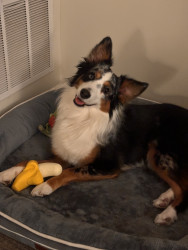 Learn MoreHer two favorite toys are bananas!! One is a giant stuffed banana that’s bigger than her. The other is a BarkBox hard chew toy. She rotates those! Her favorite treat is blueberries! She won’t come inside unless we say “want a burbelly?”
