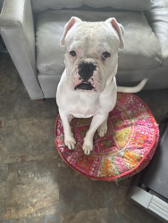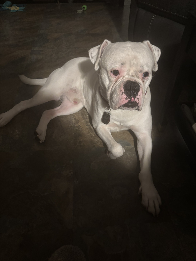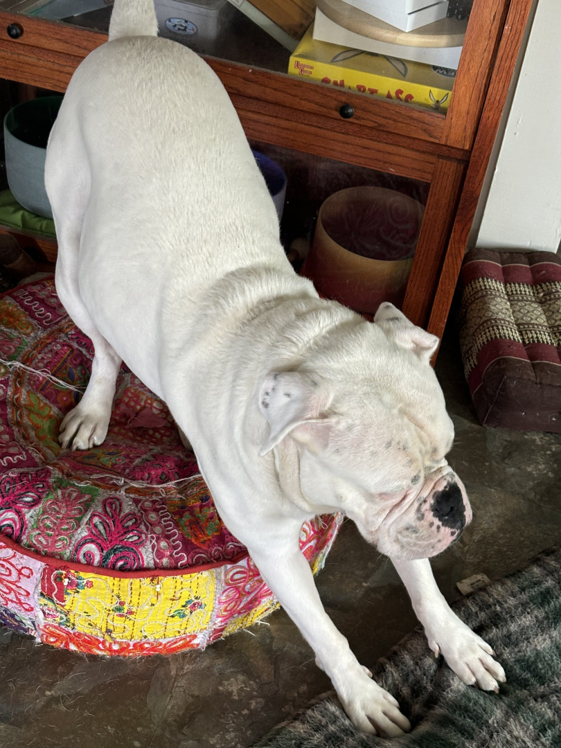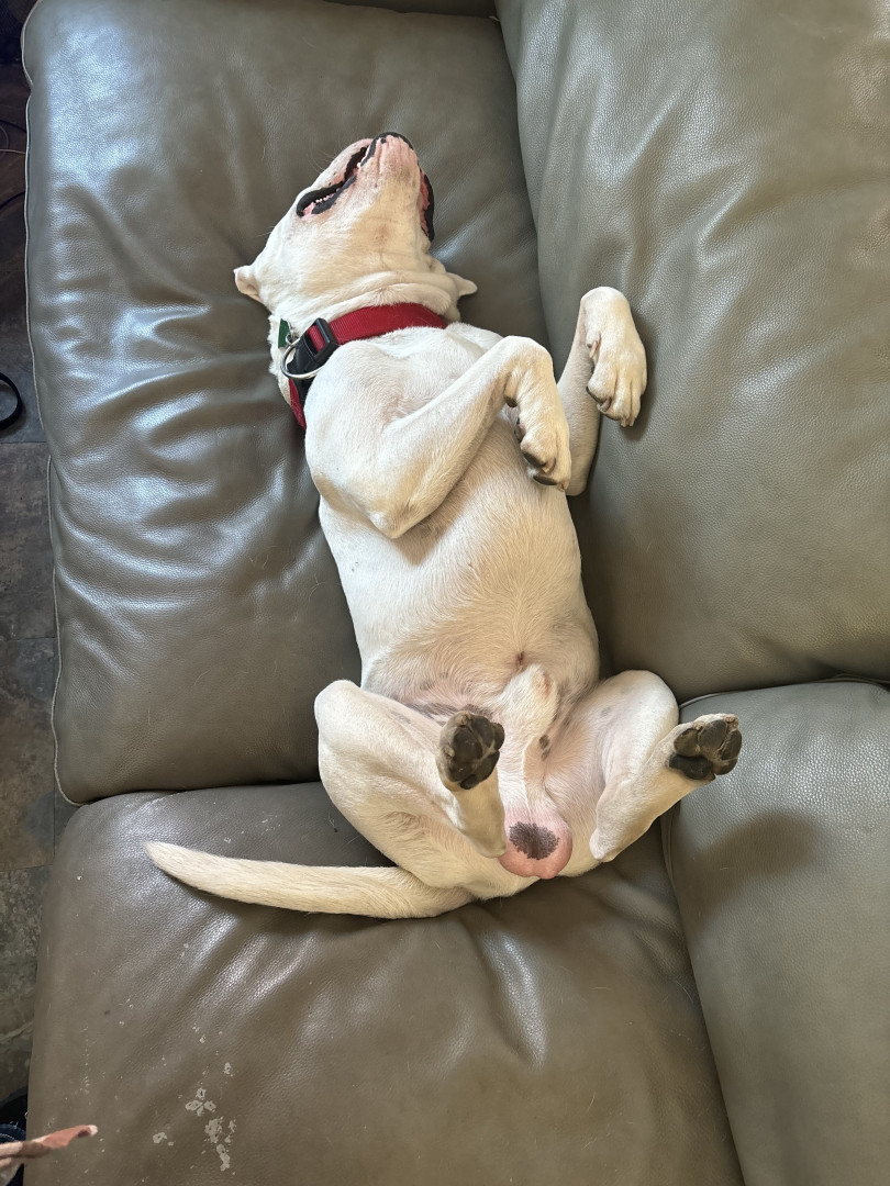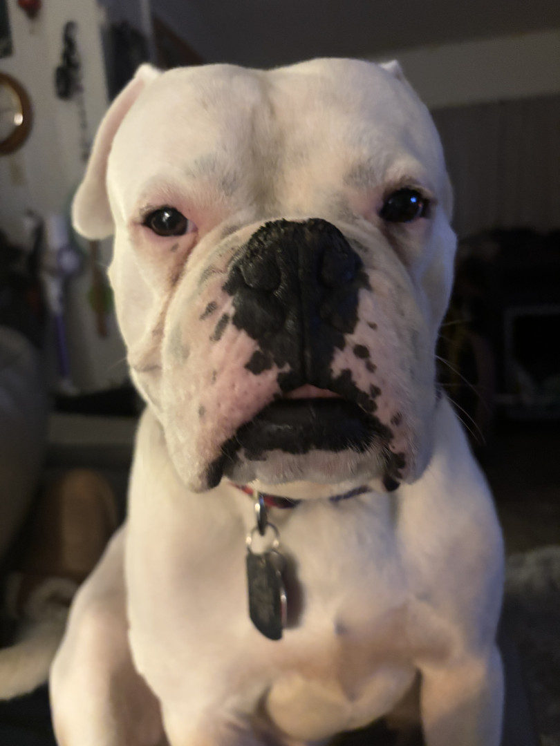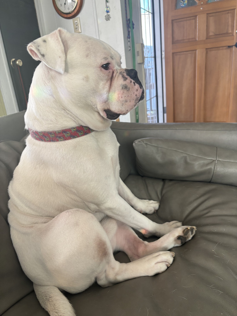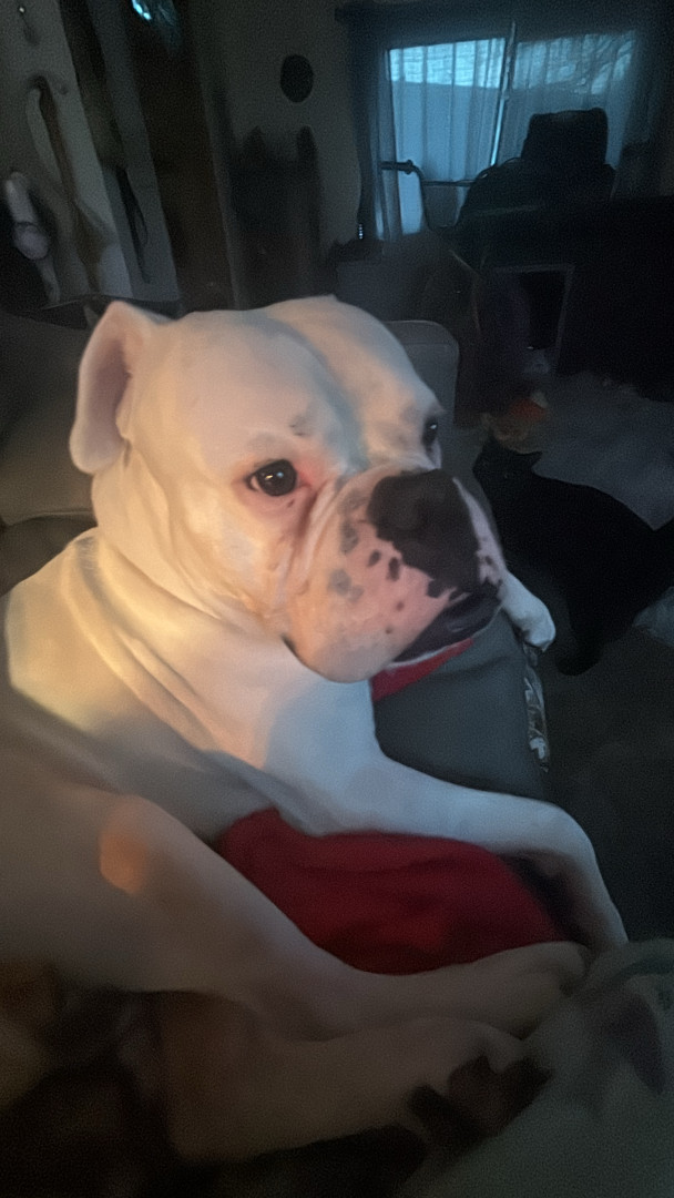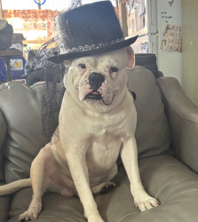 Because he is an AMERICAN bull dog. The perfect breed for that top position! All he wants is love and maybe 10000.00$$ thank you for your support!
