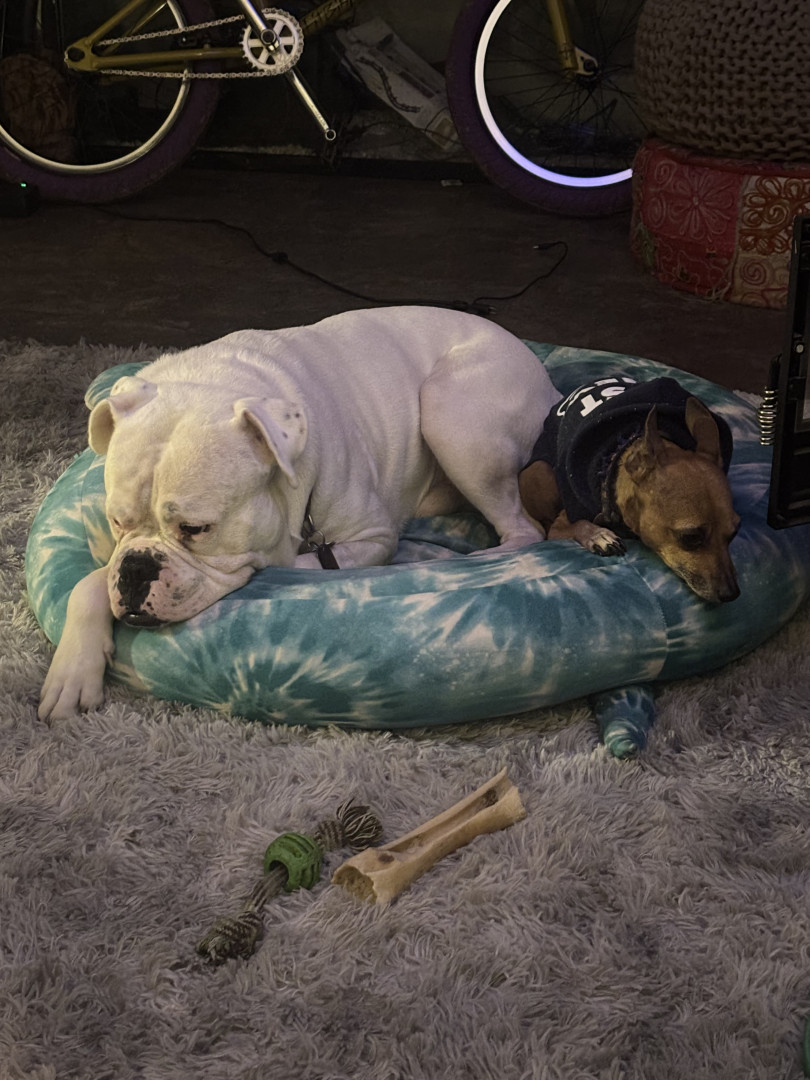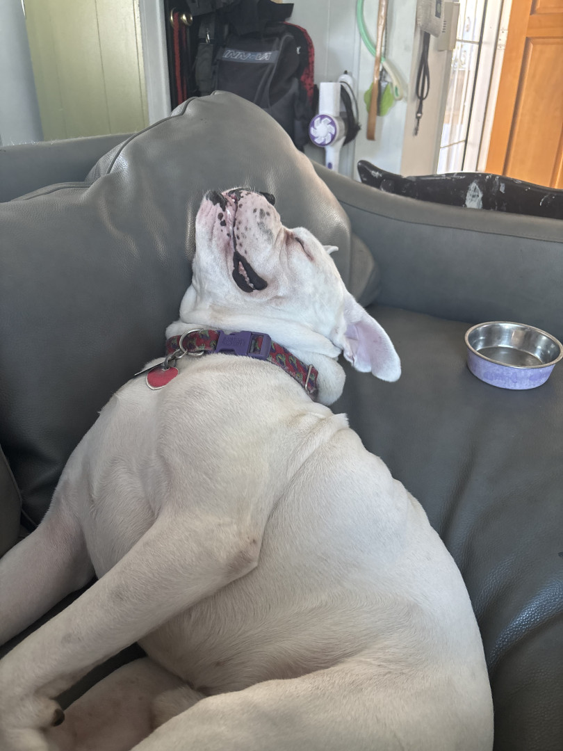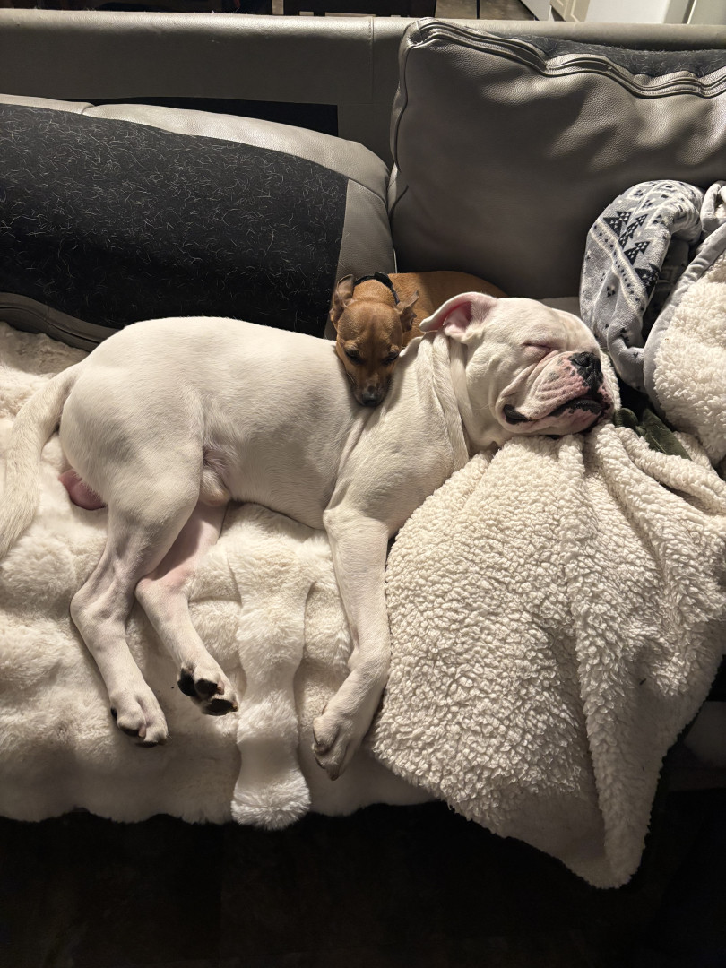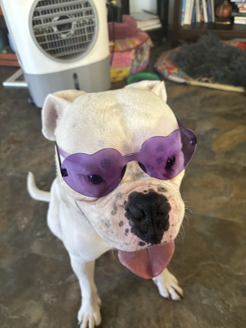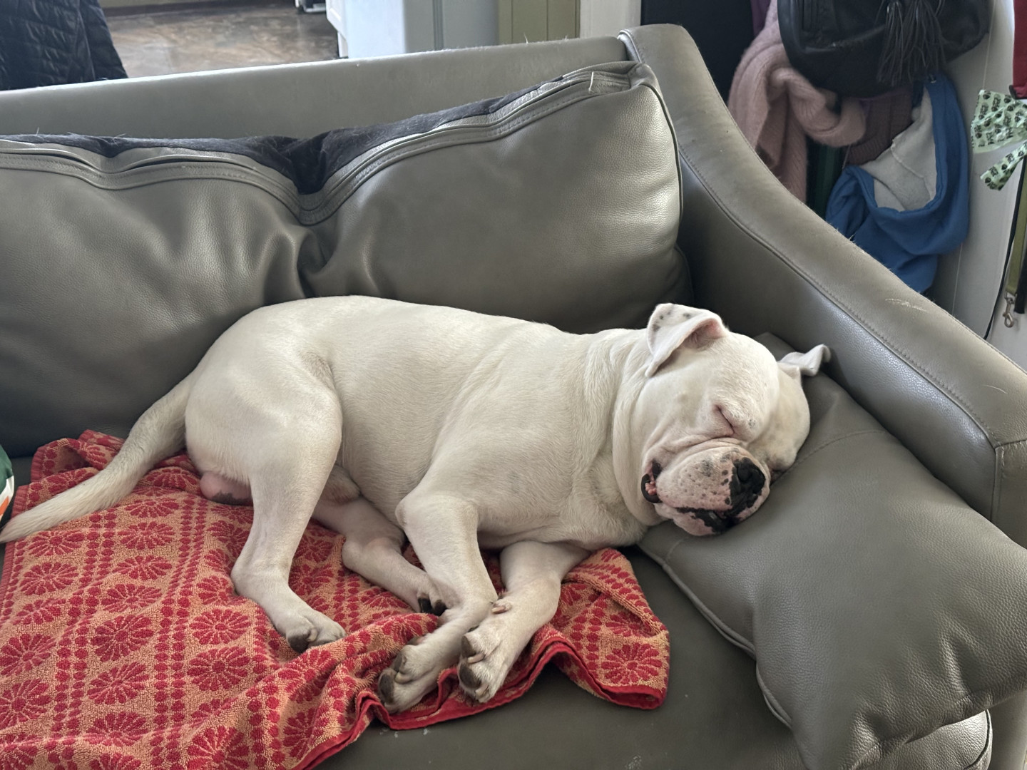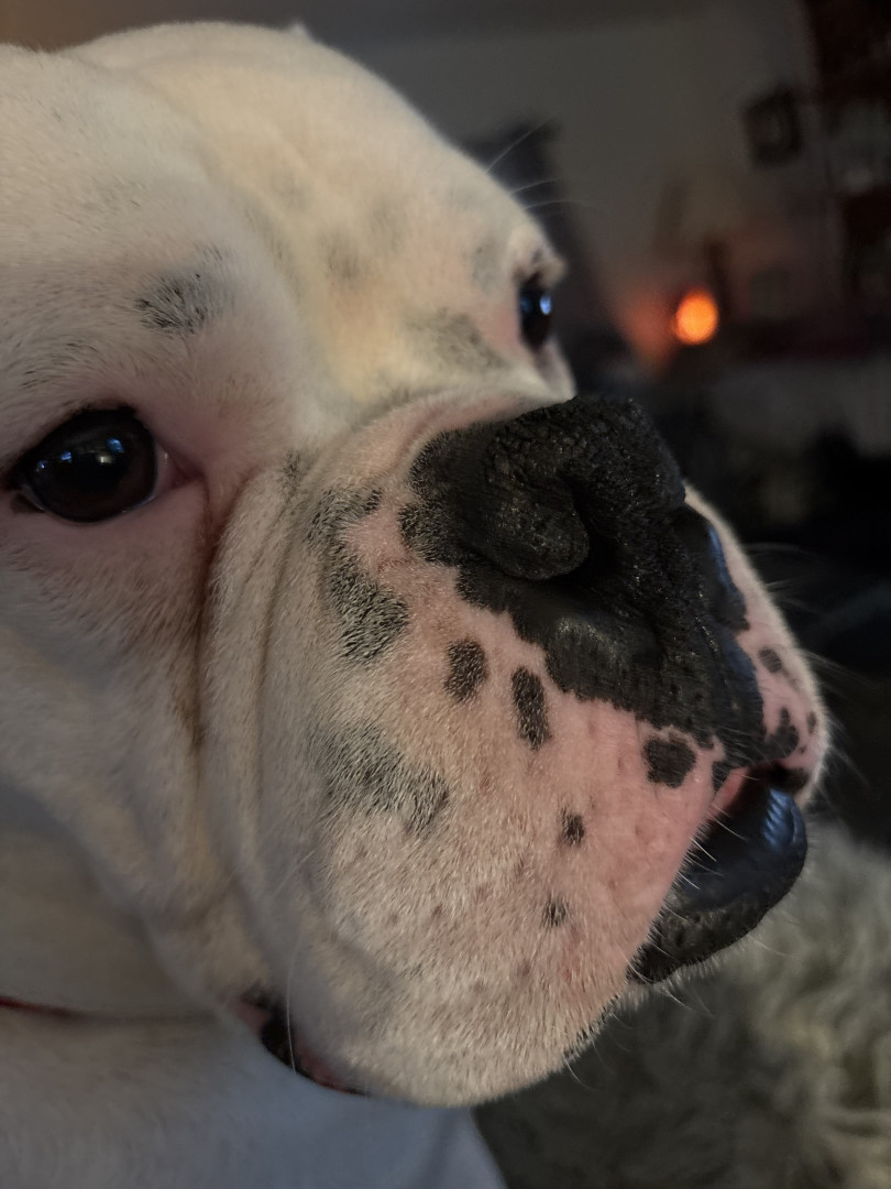 Because he is an AMERICAN bull dog. The perfect breed for that top position! All he wants is love and maybe 10000.00$$ thank you for your support!