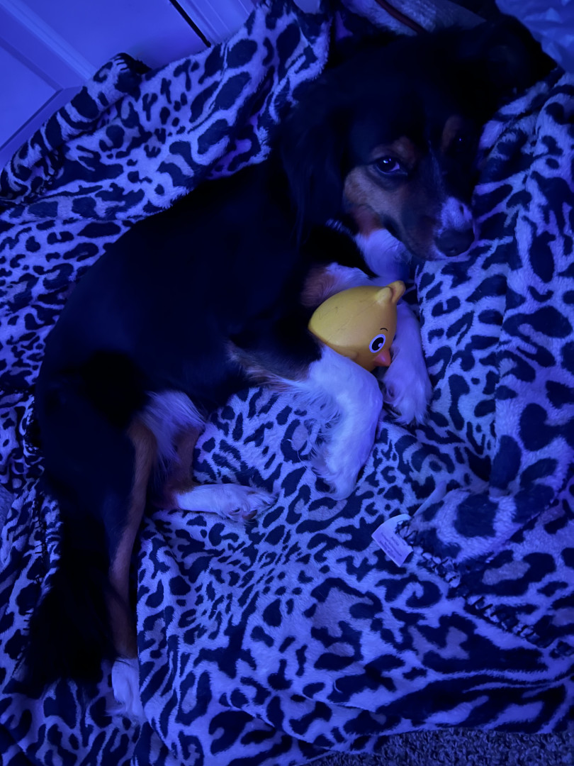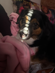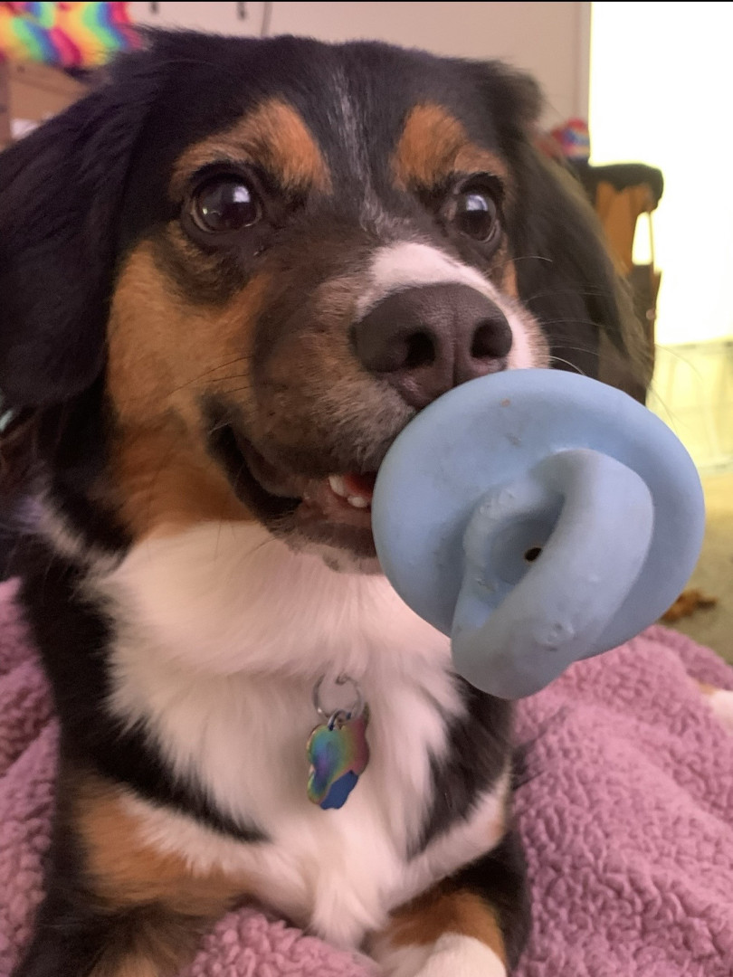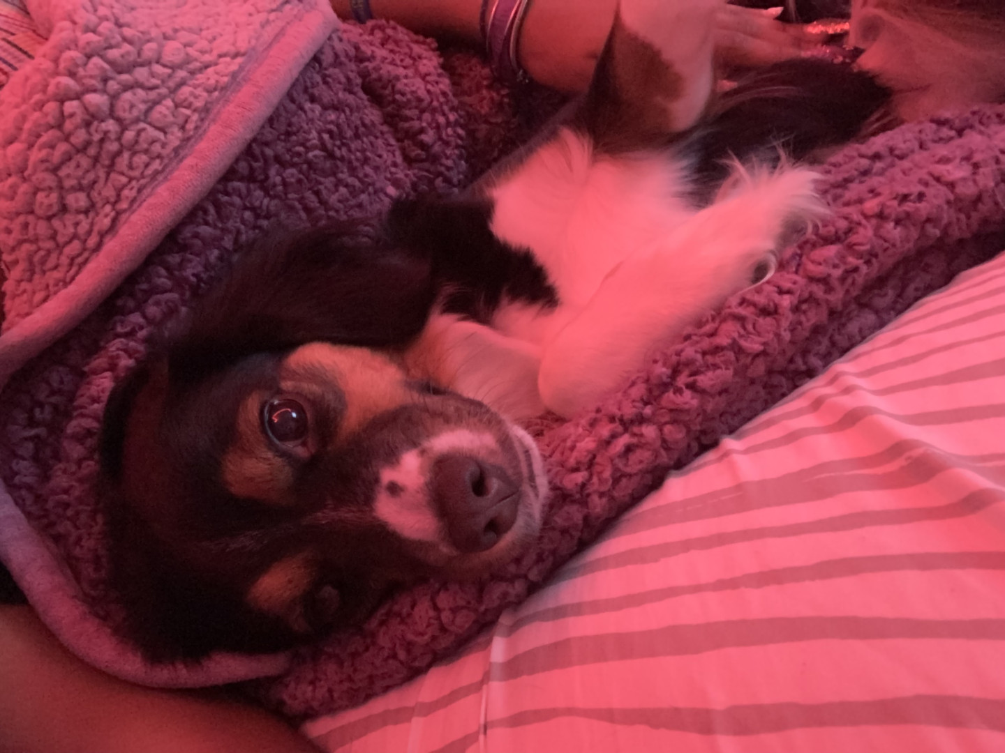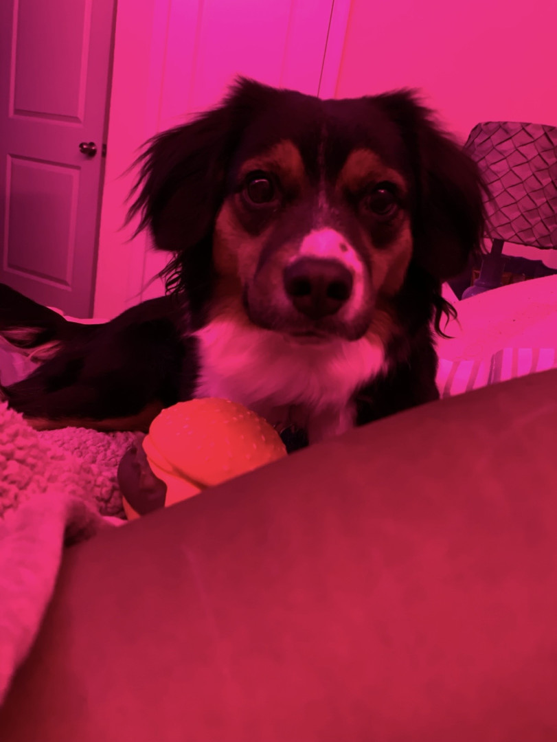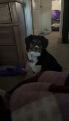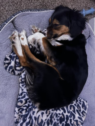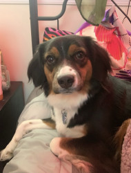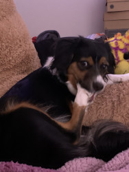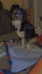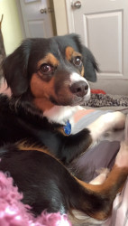Phoebe is a very energetic and wild Australian Shepherd mix, she loves playing with her toys, watching tv, snuggling on her heated blanket.
