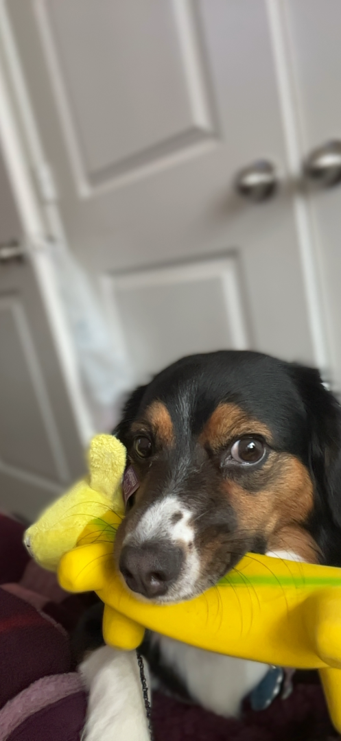 Phoebe deserves to be America’s Favorite Pet because she is incredibly smart, loving, and kind. She takes pride in every toy she owns, joyfully tossing them into the air with nonstop enthusiasm. Always bursting with energy, Phoebe never stops playing whether it’s 2 a.m. or midday, one step near her toy invites instant fun. If you touch another toy, she wants them all. Highly intelligent and protective, she faithfully watches over her household and even bravely takes on summer flies.