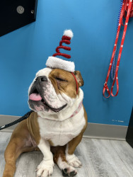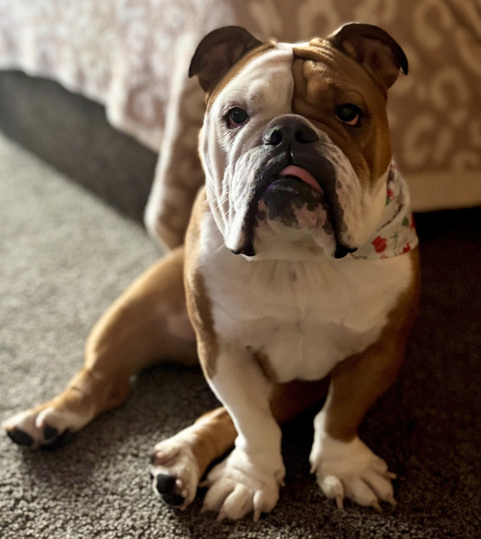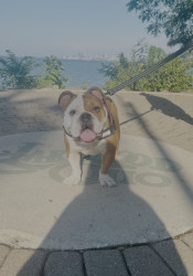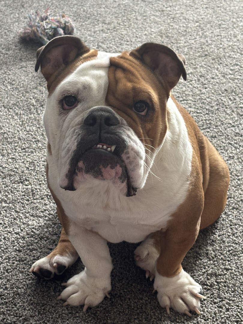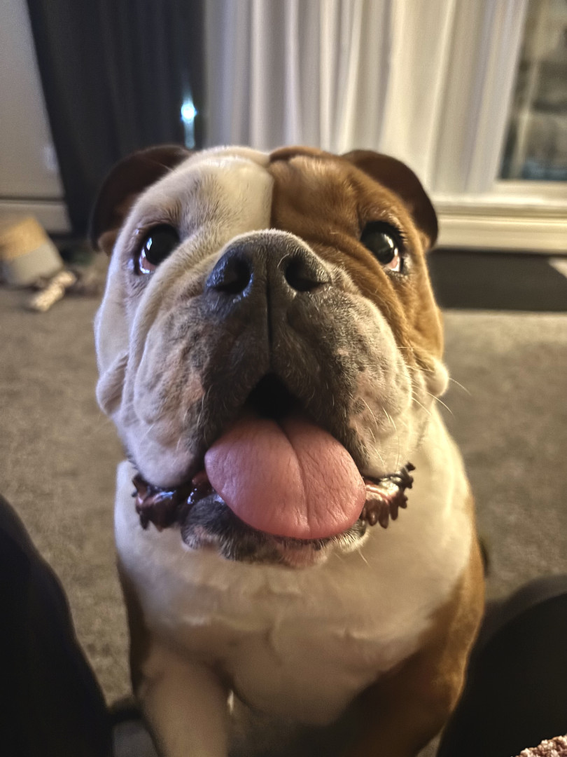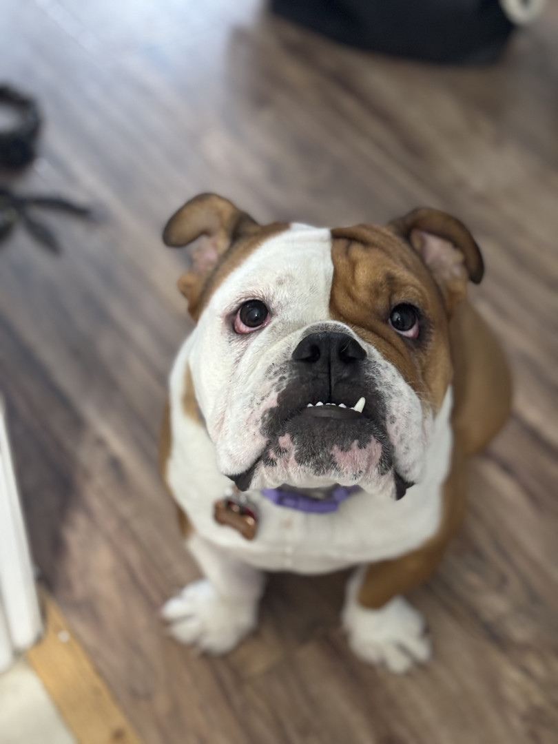 40lbs of love, wrinkles and energy. If she’s not bringing you her favorite ball she’s sleeping on her dad’s lap or on her fuzzy blanket.