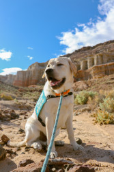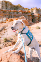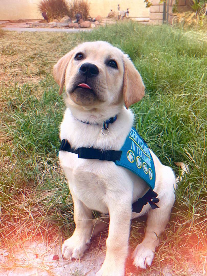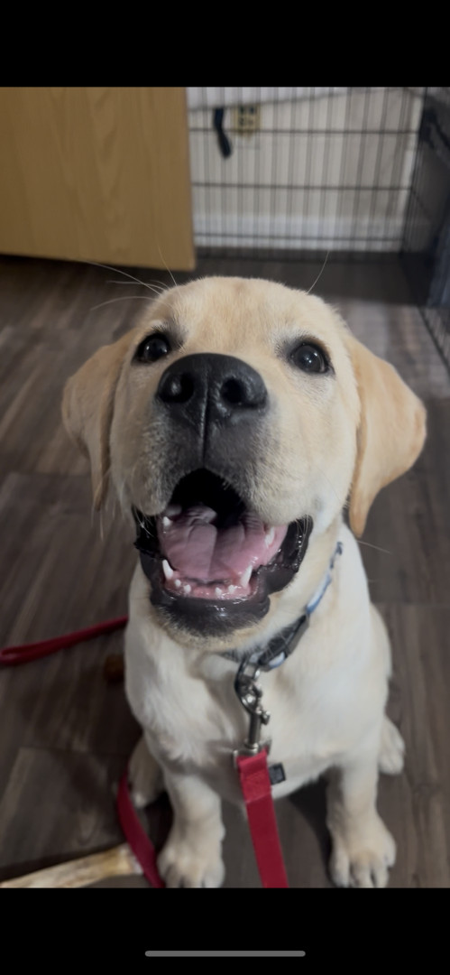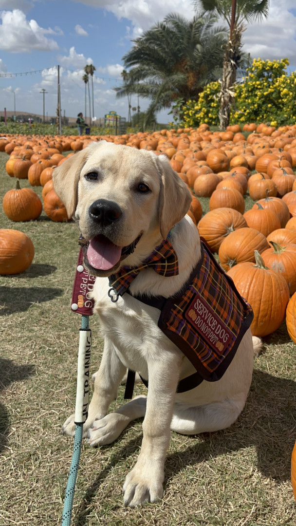 He’s currently a 7 month old service dog in training. He’s bright, bubbly, loving, and he’ll do anything for food!