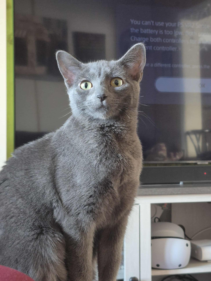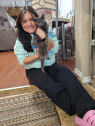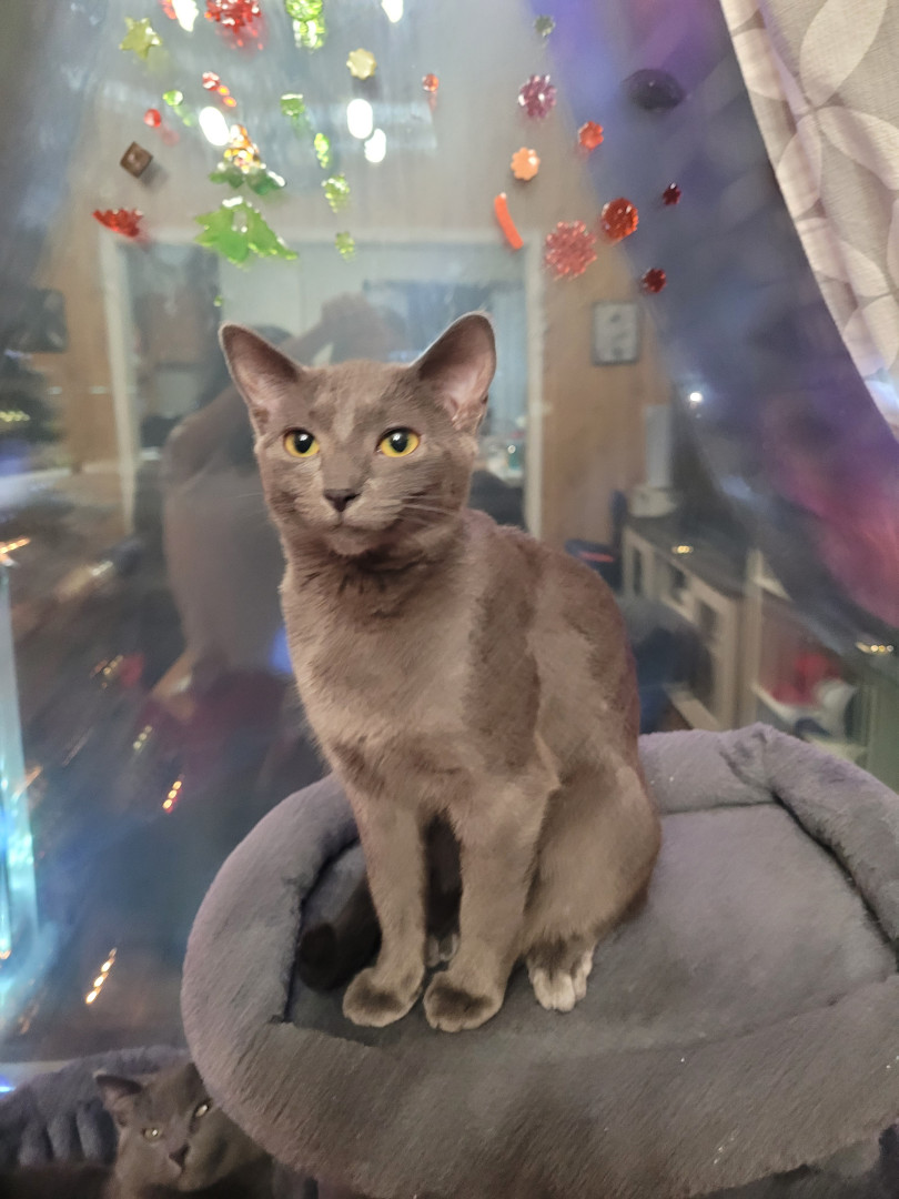 She's so sweet cat she love to play with her balls and with our new adopted cat onion she love to eat and she's always looking at th