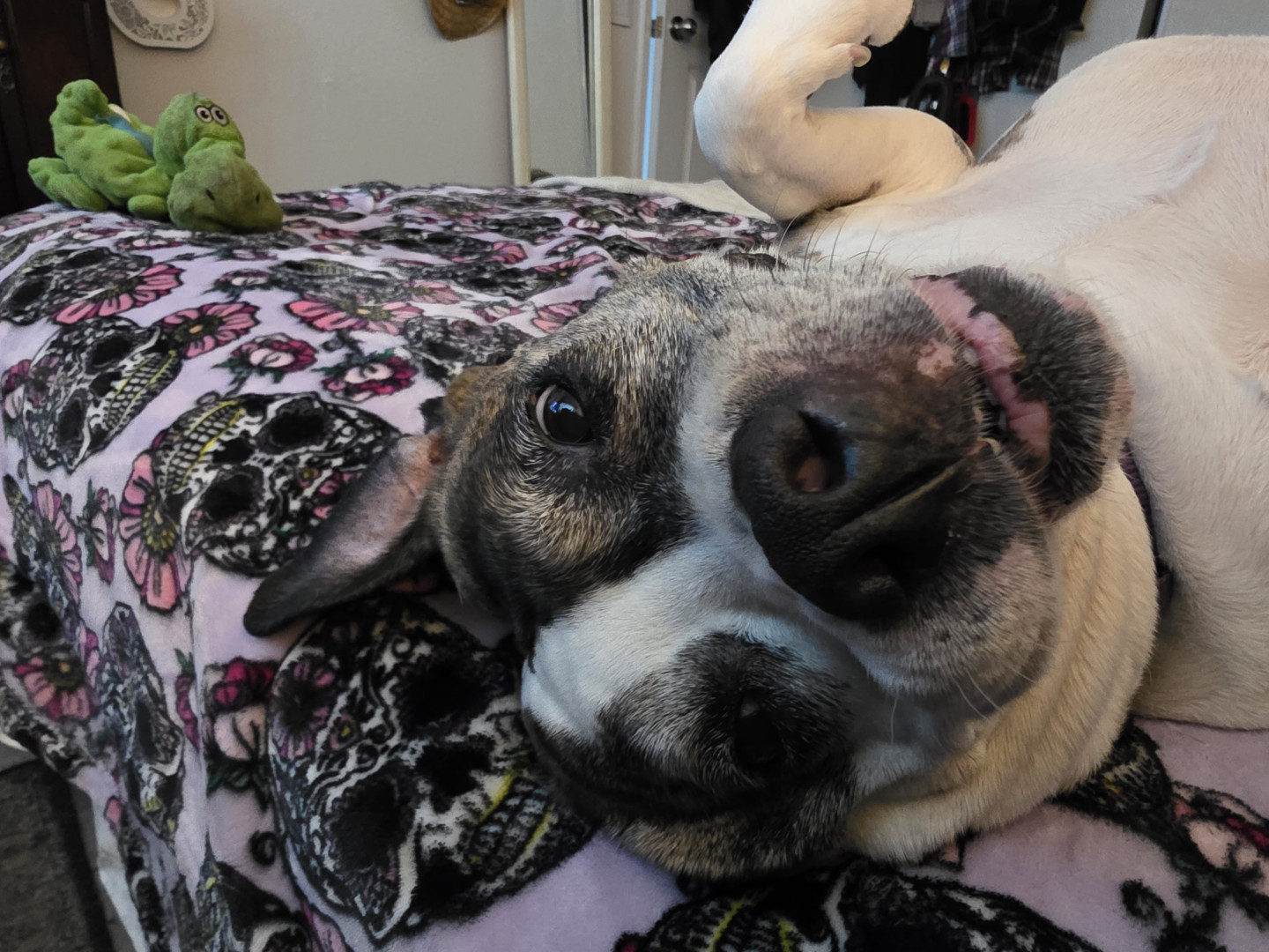 As for this dog mom ,my pingagirl is a laid back pittie. The best part she will lick you to death lol that's her way of saying she likes