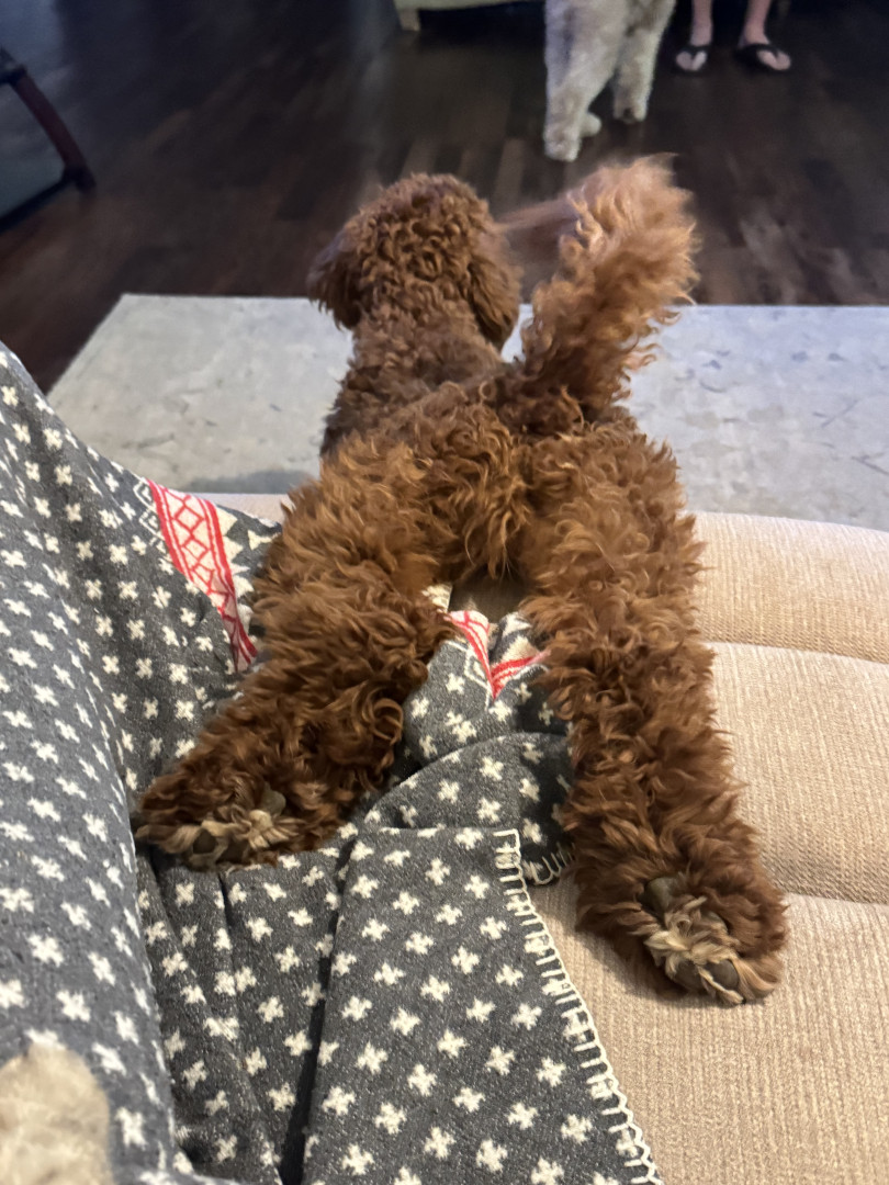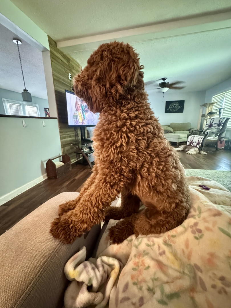Piper Rae is a 1-year old red mini Goldendoodle. She is very sweet and loves to cuddle.
