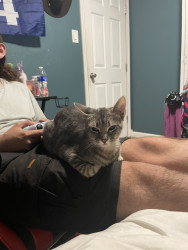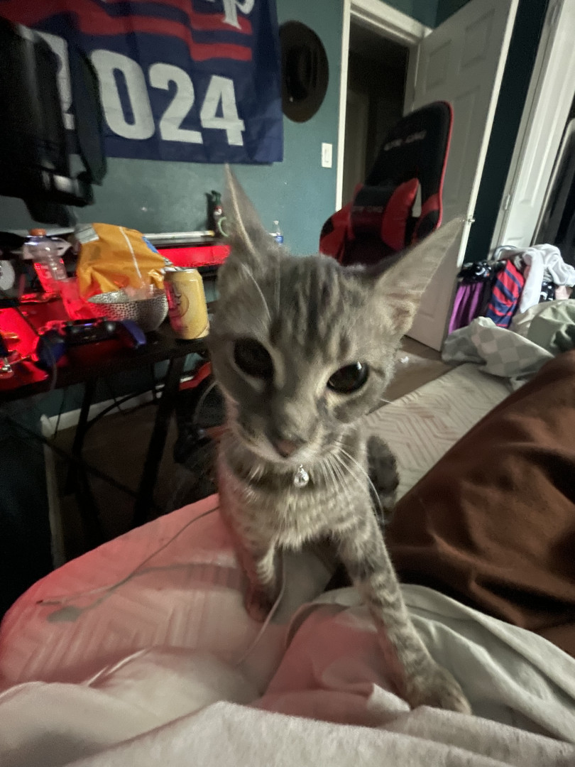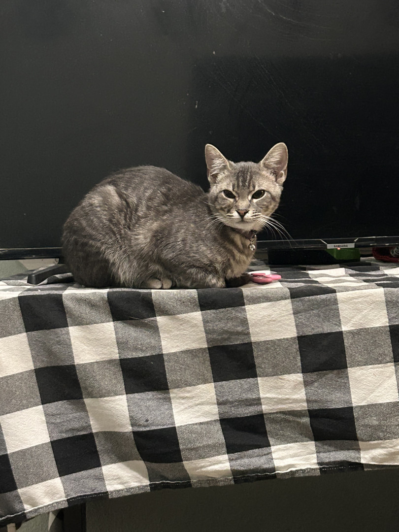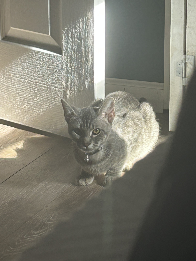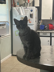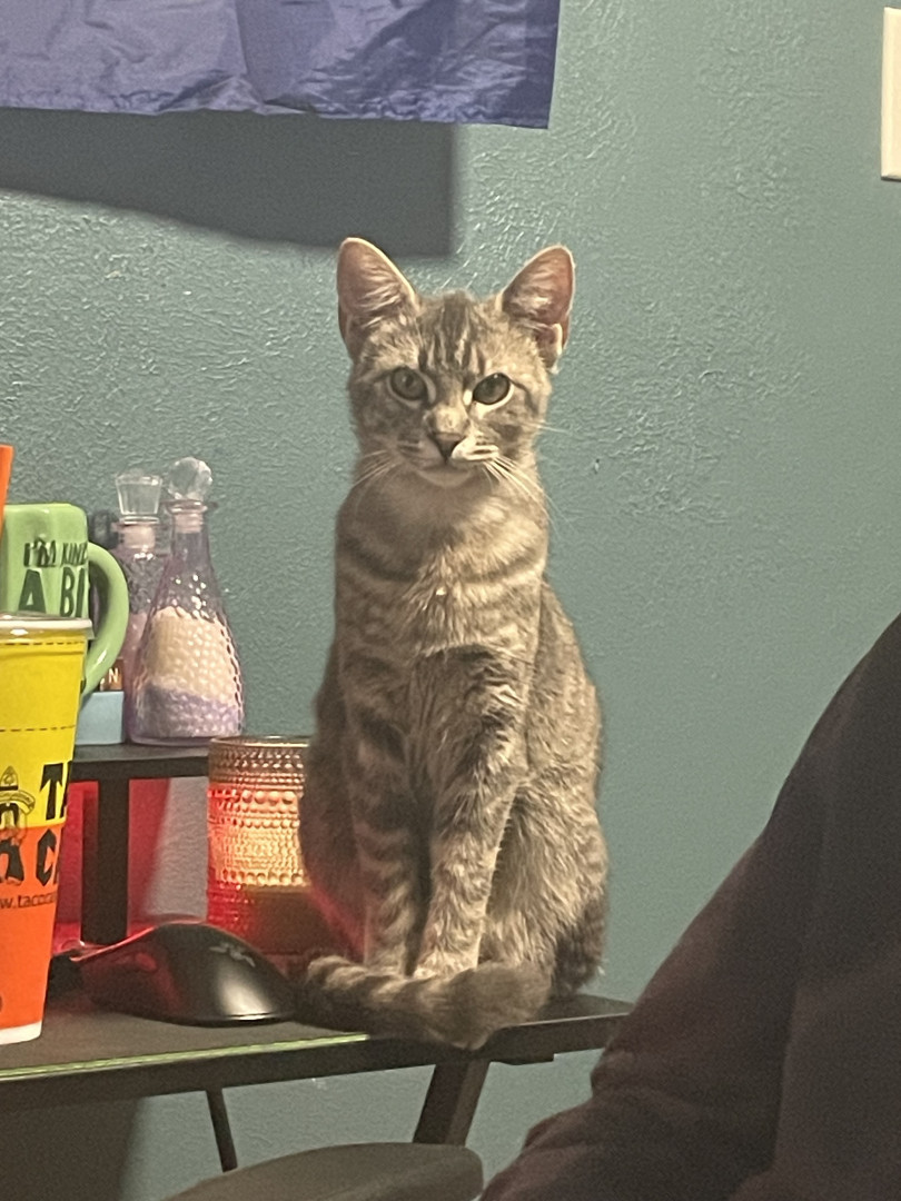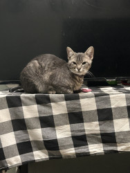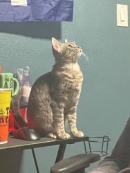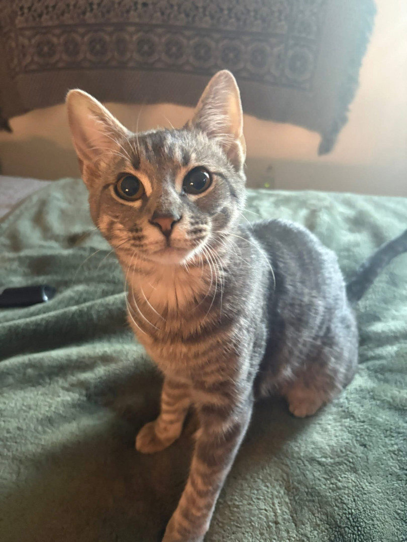 Piper is a grey shorthair tabby, with a very emotional face! if she’s angry you’ll know, if she’s happy you’ll know!