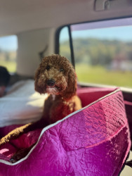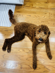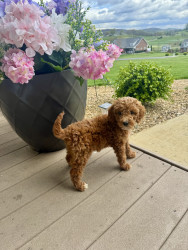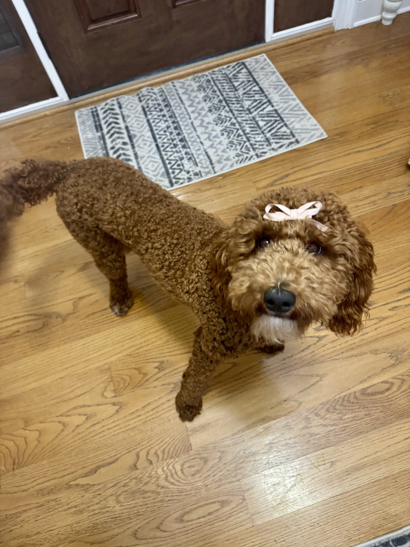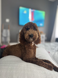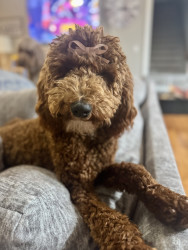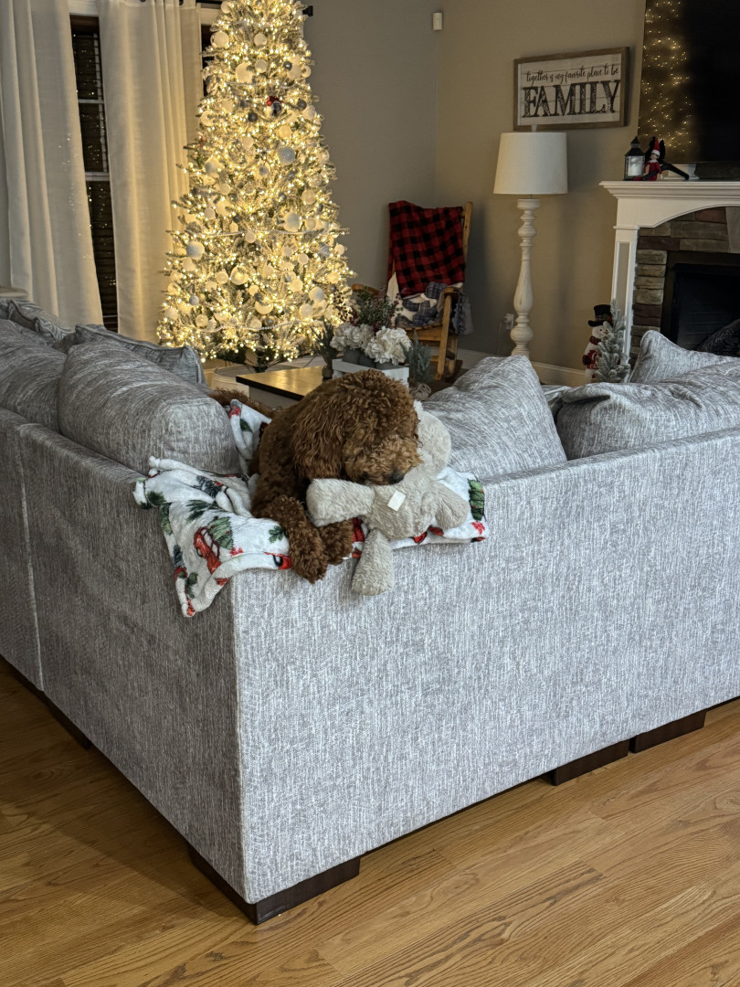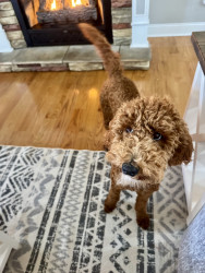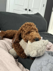 Piper is a mini Irish doodle who will turn 1 in February. She is full of energy and absolutely loves playing with her toy bear.