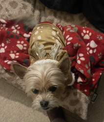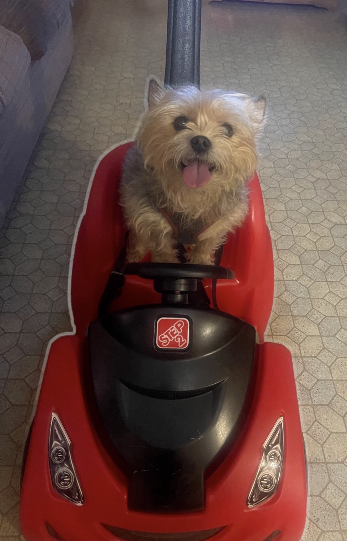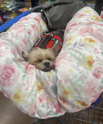 Stuffed duck is her favorite toy and favorite treat- Wiggles and Wags Dipped Slices.
