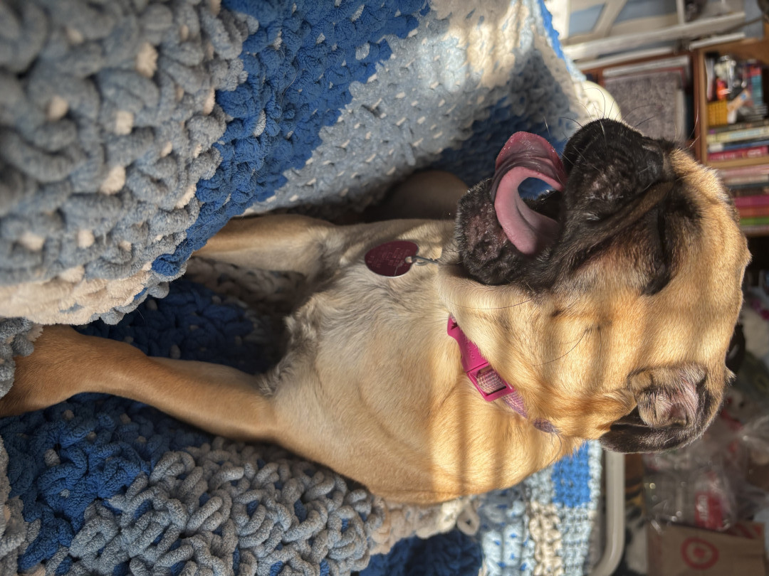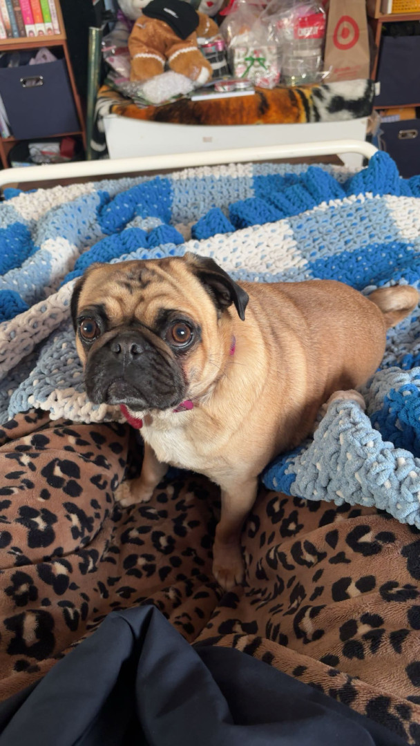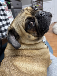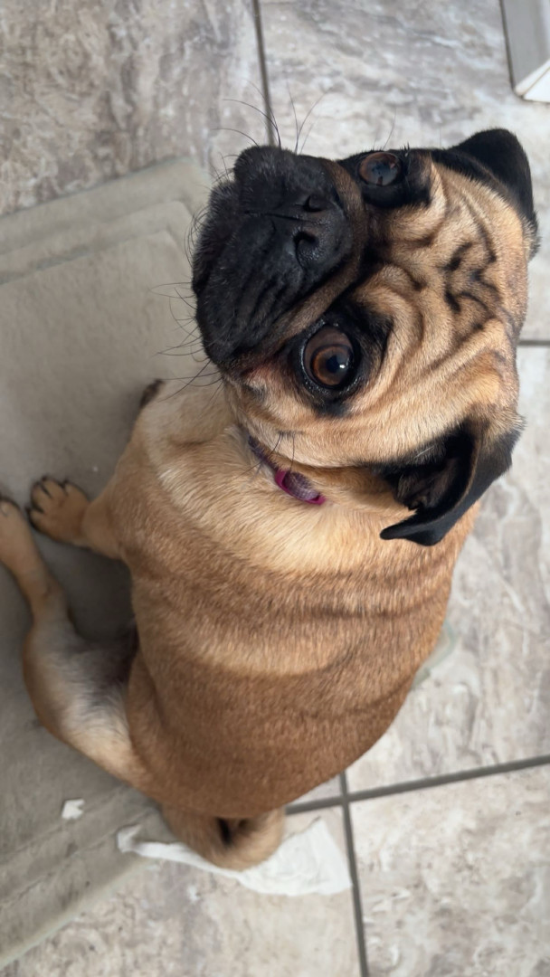 Piranha the pug is an adorable little gal who enjoys teasing her older brother Everest. She can be mischievous and sneaky sometimes