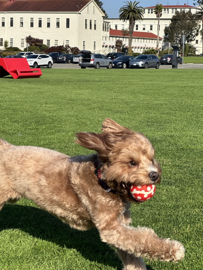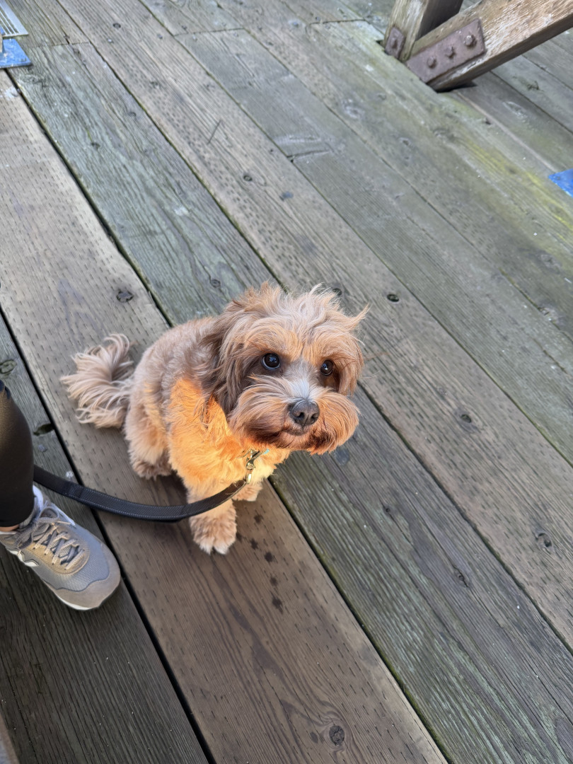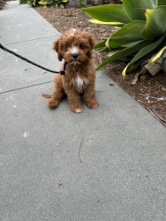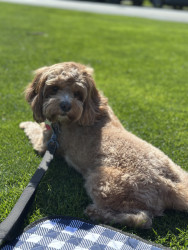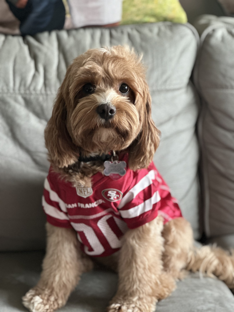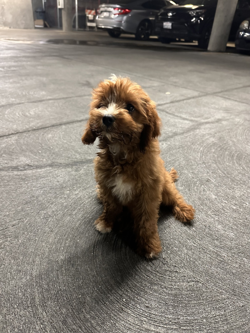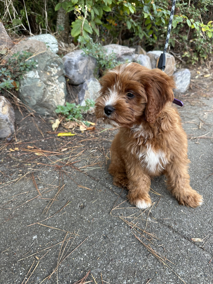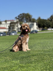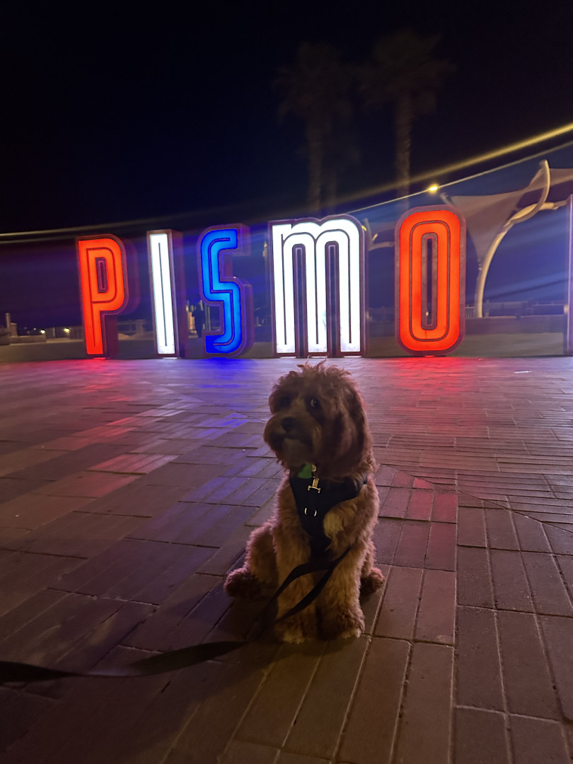 Pismo is a sweet, easygoing Cavapoo. Pismo loves snuggling with mom, playing fetch with dad, and chasing his favorite soccer ball.