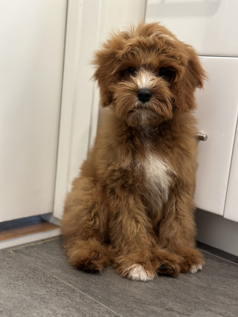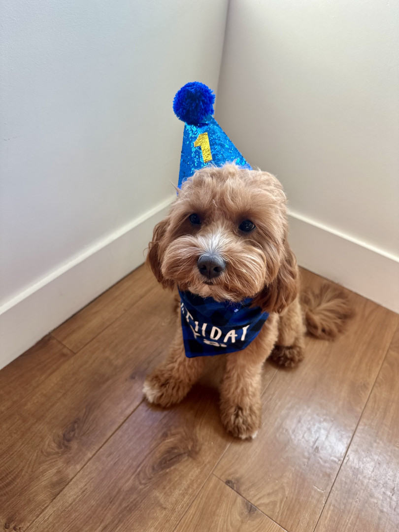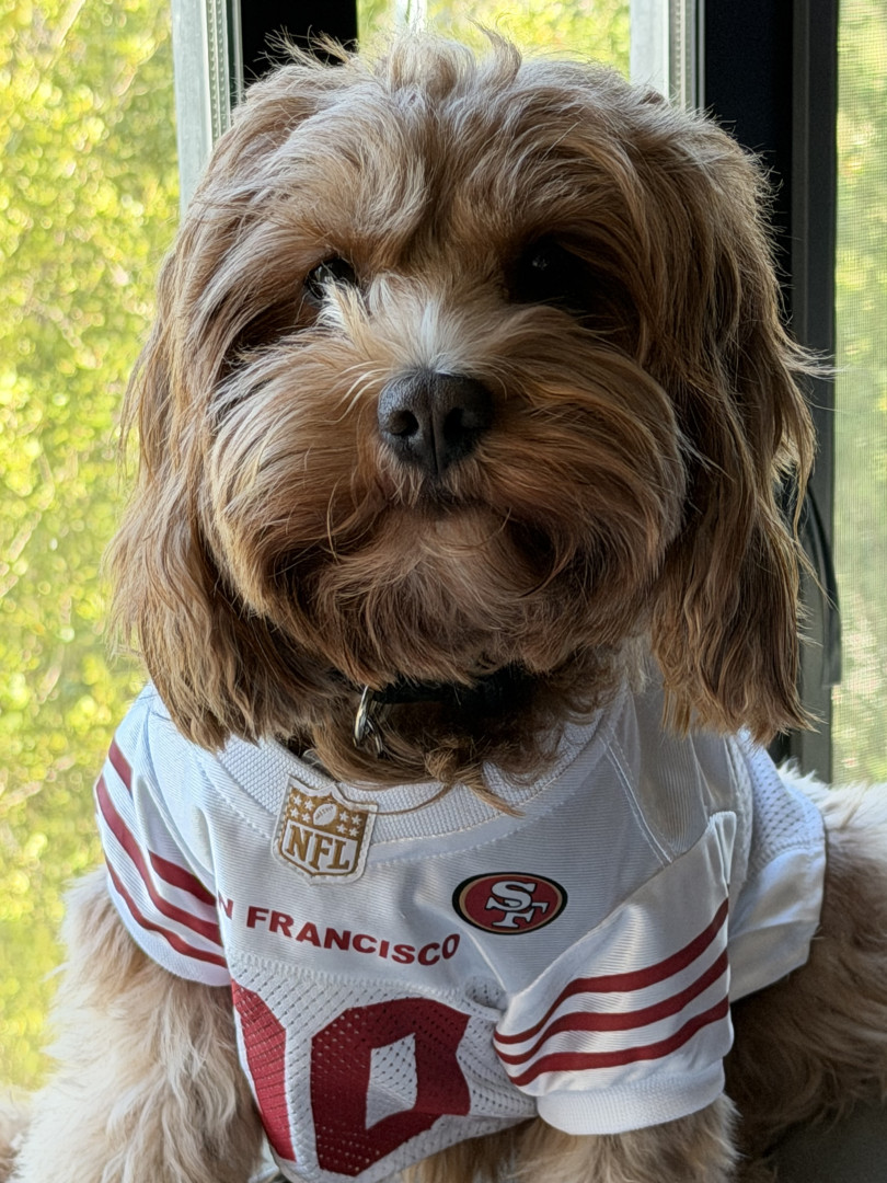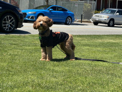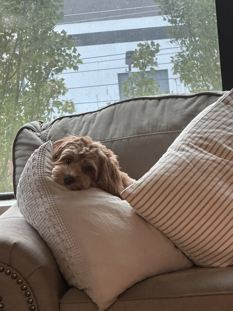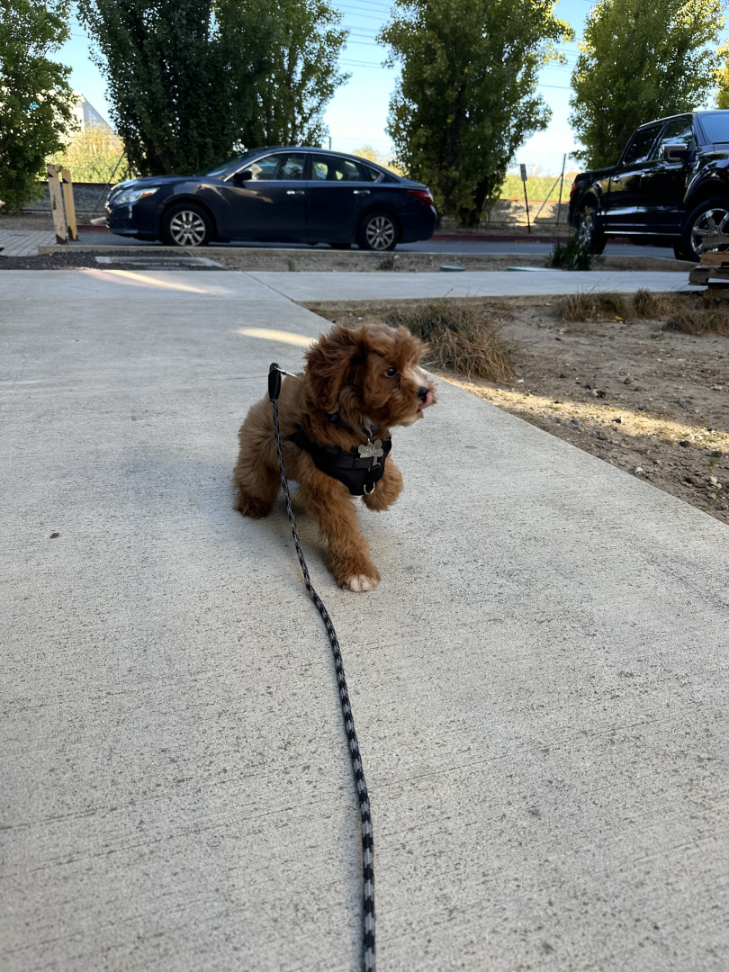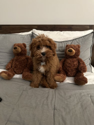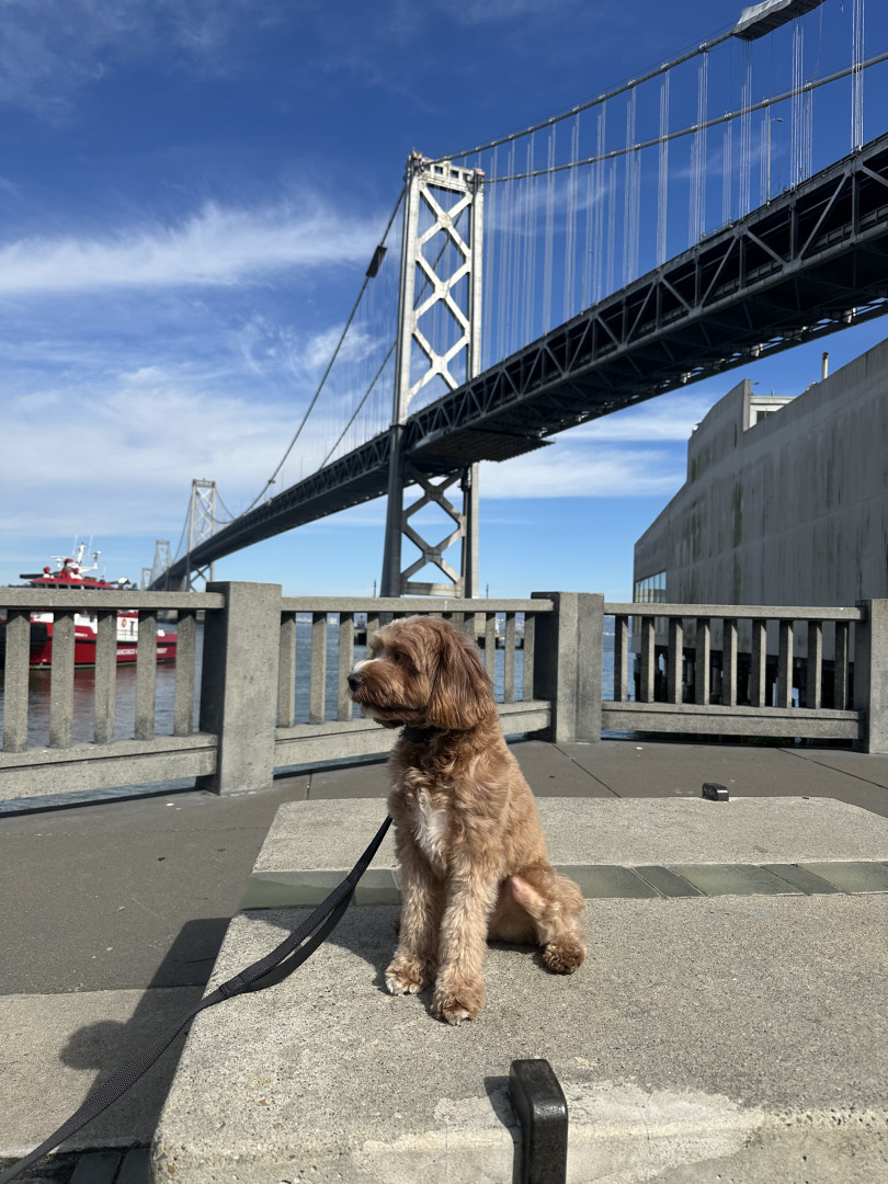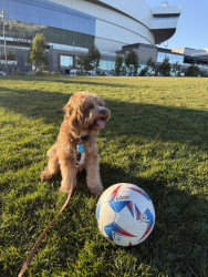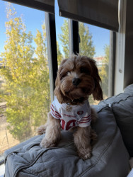 Pismo is a sweet, easygoing Cavapoo. Pismo loves snuggling with mom, playing fetch with dad, and chasing his favorite soccer ball.