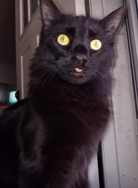 His favorite pose is love in his eyes & his tongue sticking out. He loves to spy on me. He tells me exactly what he wants/needs