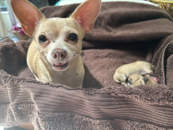 Pixie is a typical chihuahua however this photo was taken the morning she delivered her puppies and you can just see how happy she was.