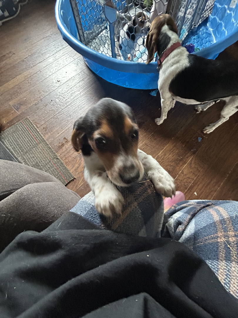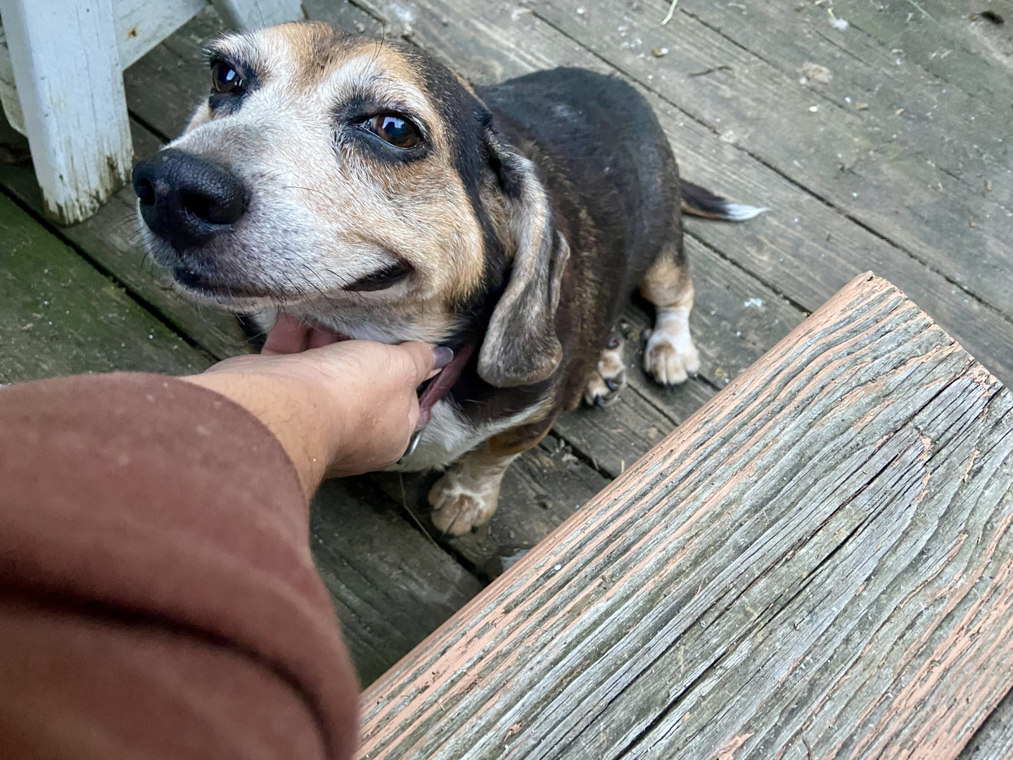 Pluto is a senior Bluetick Beagle who rescued from physical abuse when he was 10 months old. Sadly no one wanted him so we adopted him!