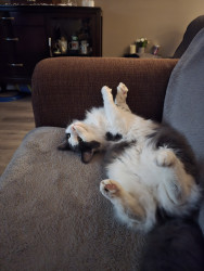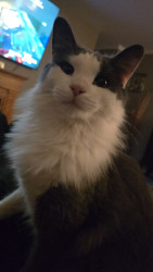 Po is so lovable, he knows when im feeling down and hes right there little paws on my face purring. He shows love. People who don't normally like cats, when they meet Po, they fall in Love with him. Hes smart and mischievous. Hes my comfort.