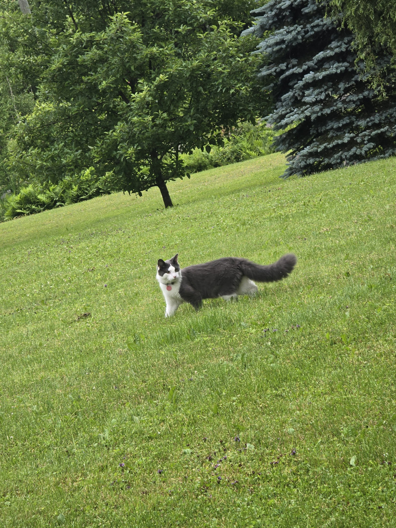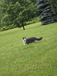 Po loves playing in the snow!!! He is always talking when playing with is toys. He also answers when I say Po where are you, no matter where he us you'll here meow.