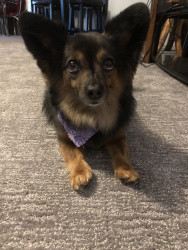 Poca loves her humans. It doesn’t take her long to warm up to visitors and she Loves preforming tricks for her treats. She is 9 years old and can still learn a new trick in 5 minutes! She’s super smart and attentive.