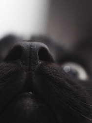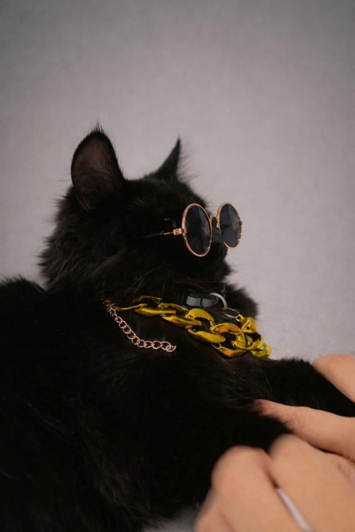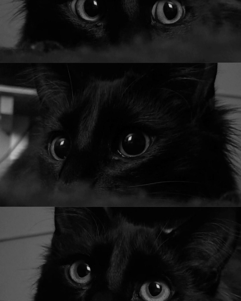 A sleek black shadow with golden eyes, curious, calm, and quietly ruling the house with soft paws and endless charm