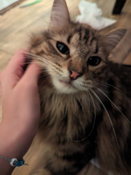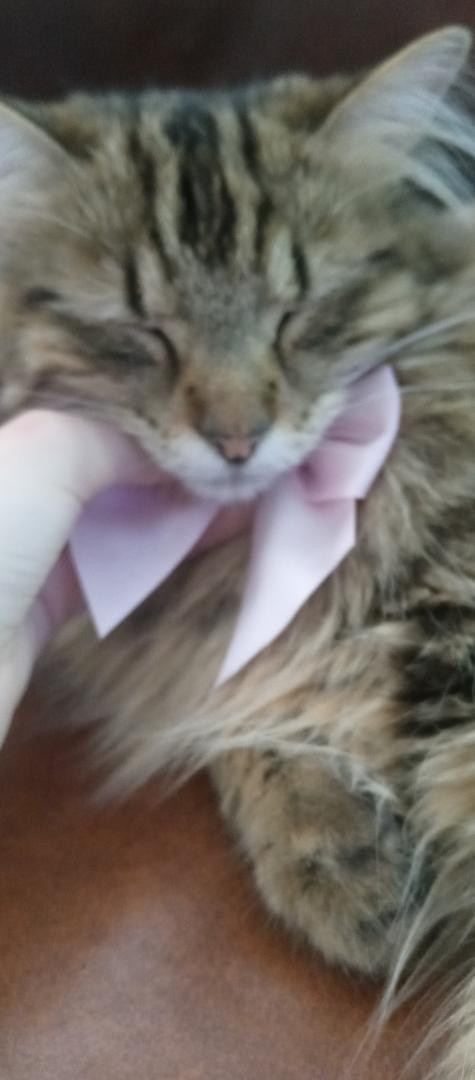 This is Pom-Pom, my brothers cat!! She loved climbing trees & cuddling up. She's no longer with us so I'm entering her to honor her