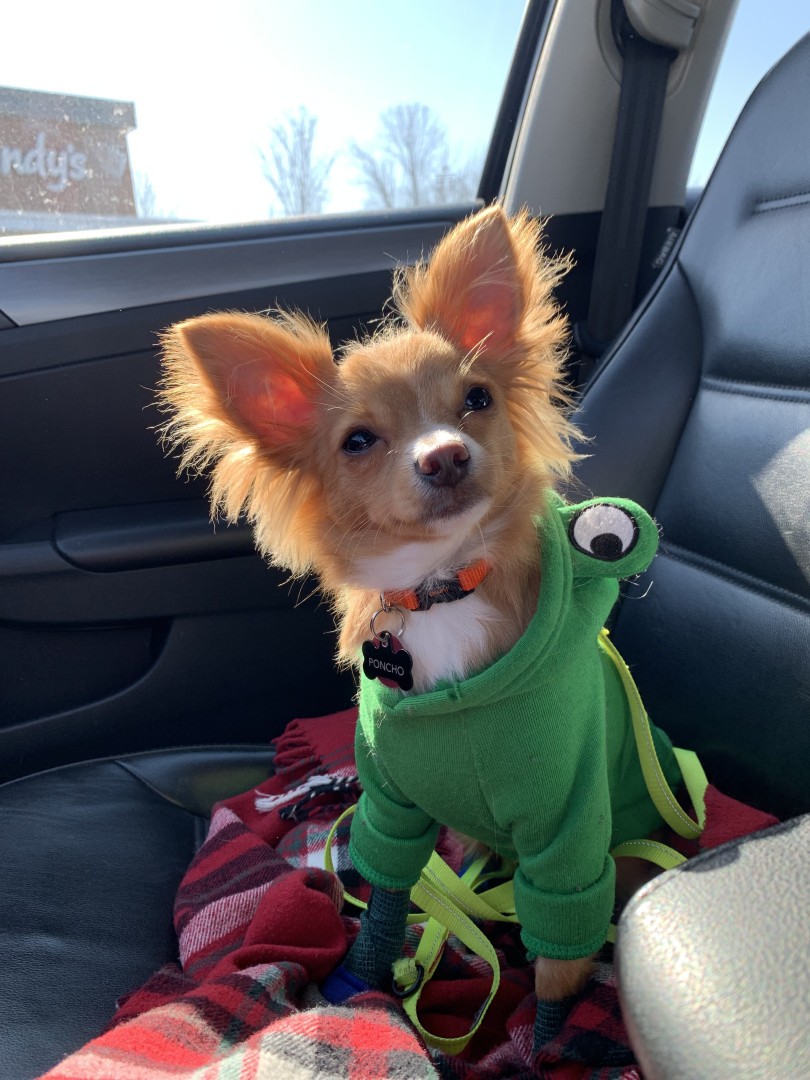 Poncho is a unique chihuahua, in that he loves the outdoors! We camp, hike, swim all summer! His biggest feat is a 5k hike up 100m last summer. He just has no idea how small he is!
