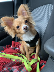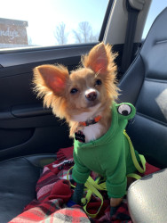 A fun loving Chihuahua with a personality as big as his ears! He loves hiking, kayaking, camping, anything the big dogs do poncho can do!