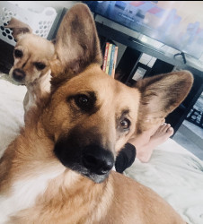 Coming from an abusive home and named Jeffery Dahmer, Pony boy is far from a monster. He has protective instincts and is always running down the hall with his loud German Shepherd bark and little Corgi legs if anyone gets out of line. He is the peace maker and brings a sense of loving calm in our home❤️
