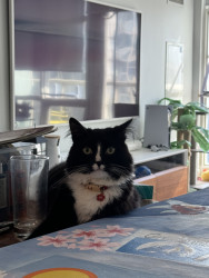 Fluffy chaos king: plays hide-and-seek with Aspen the Klee Kai, ambushes daily, and copies his human dad like a furry parrot.