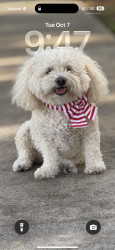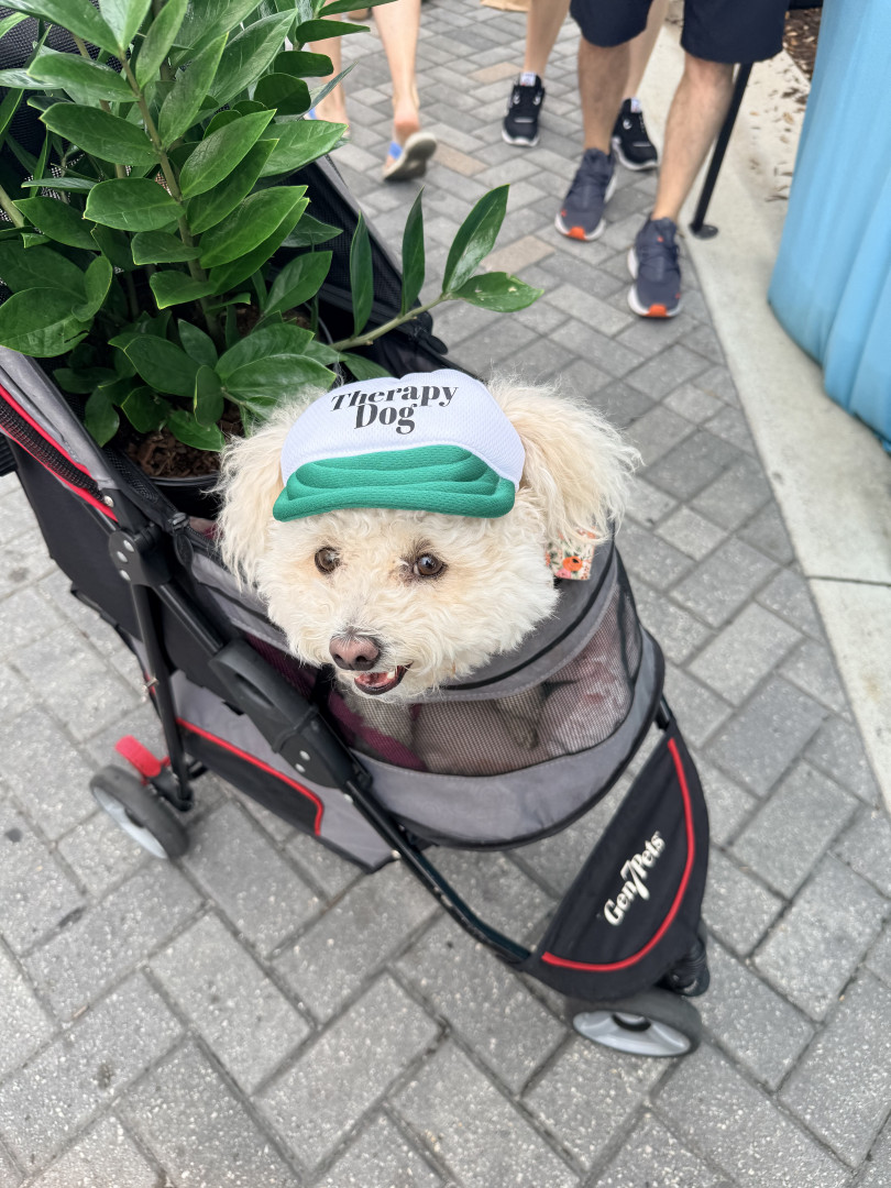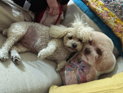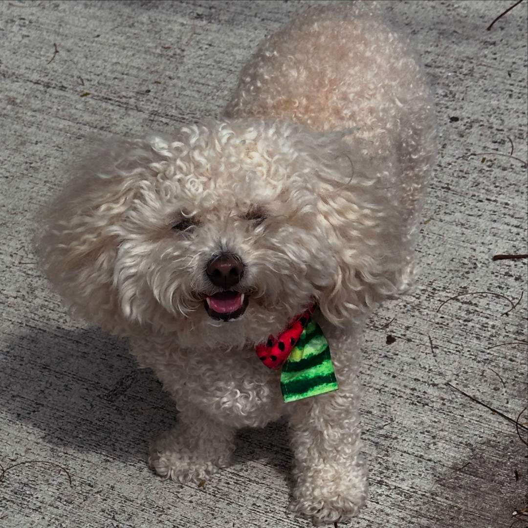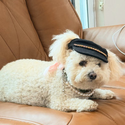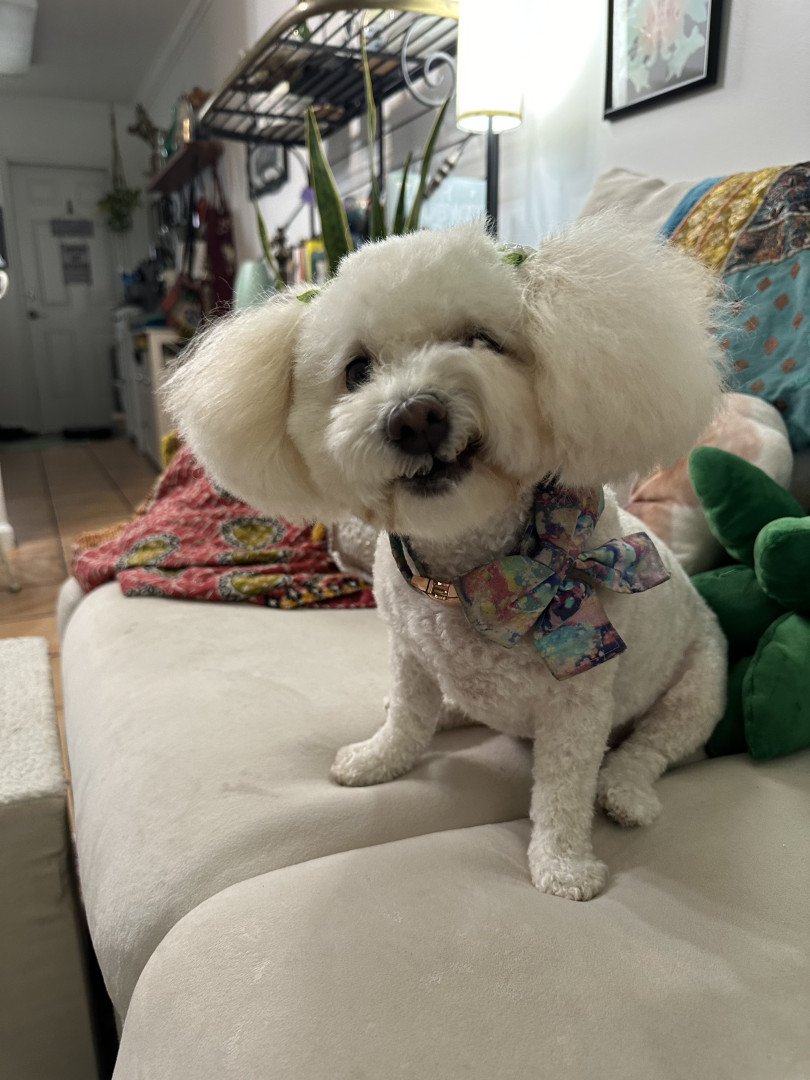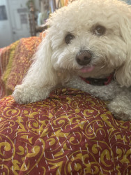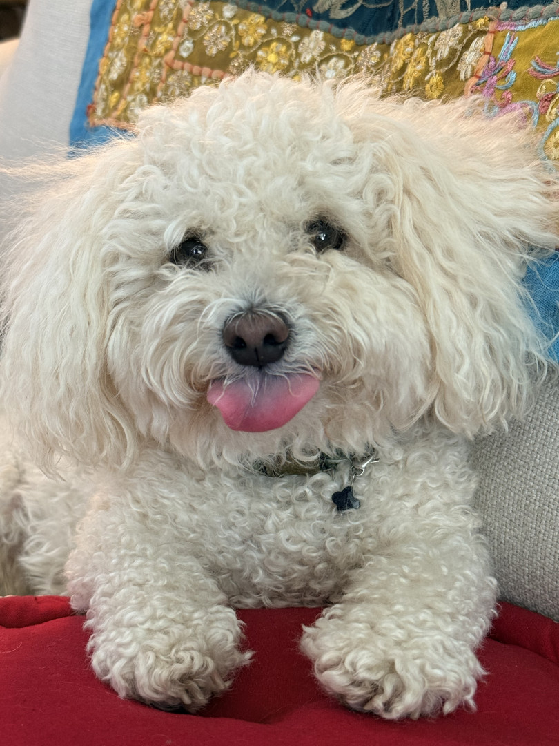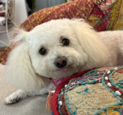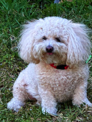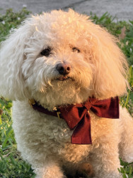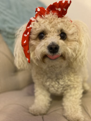 Poppy is a 6 year-old poochon. You can find her working as a therapy dog in nursing homes and at a psychologist office, or eating a treat !
