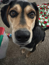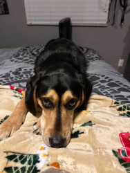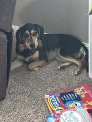 This is Poppy—professional bunny chaser, full-time love bug, and social butterfly. As a beagle/lab mix, she’s got the energy to run for days