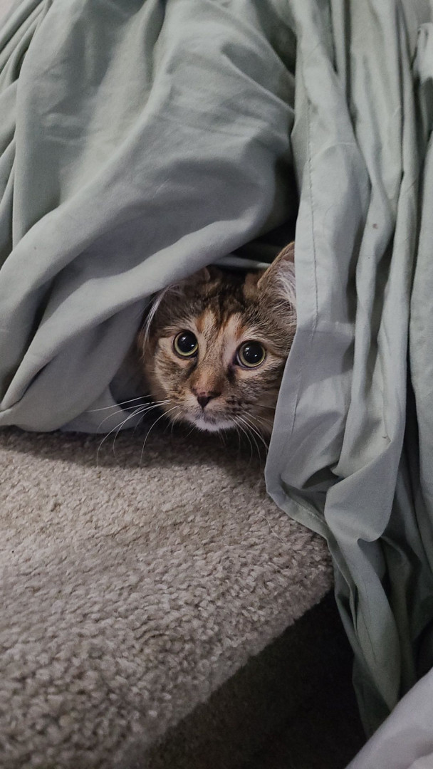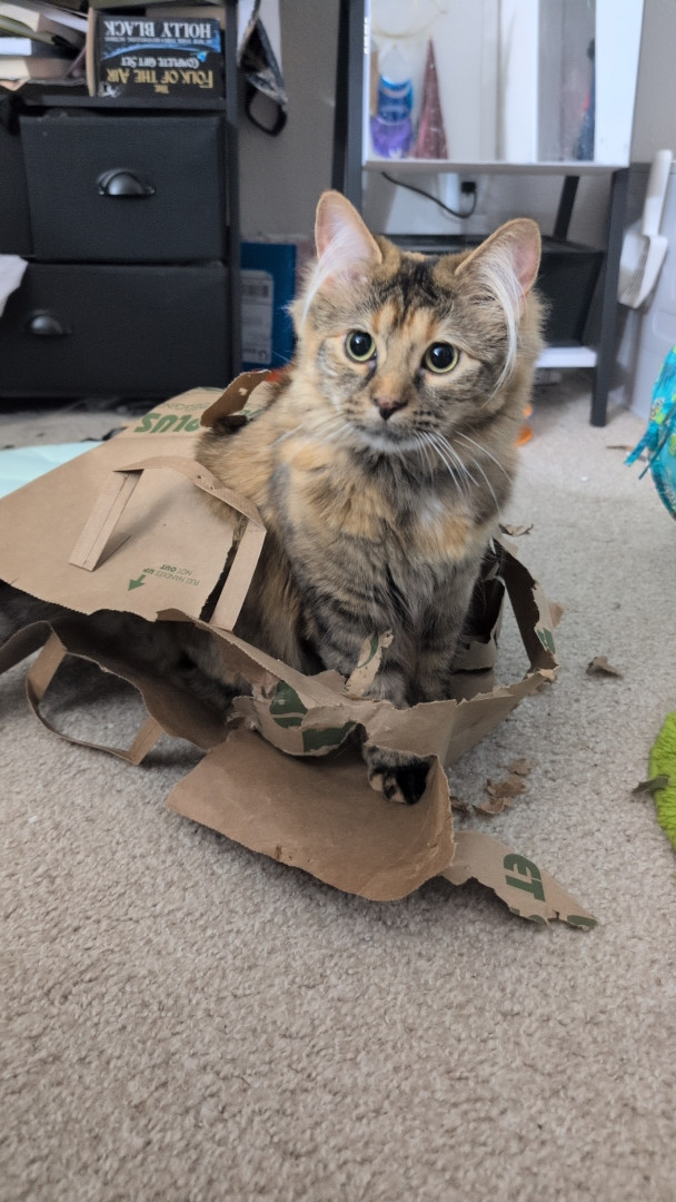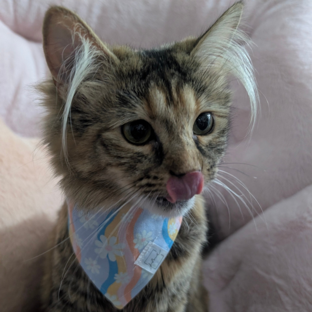 Poppy is the sweetest most chaotic cat. She likes to suckle when she affectionate and eat all the things she shouldn't
