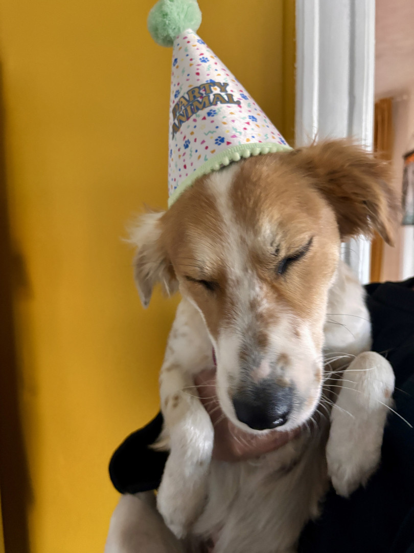 Poppyseed is a two year old rescue from Aruba. She is super high energy and loves everyone she meets. She’s also a registered therapy dog.