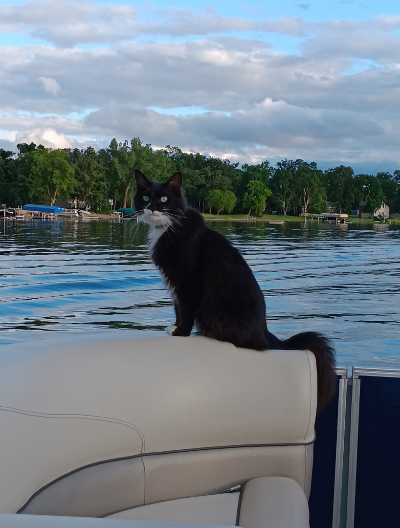 Pounce keeps proving to us that even tho he can be very independent, he always is up for an adventure with us. He loves pontoon rides!