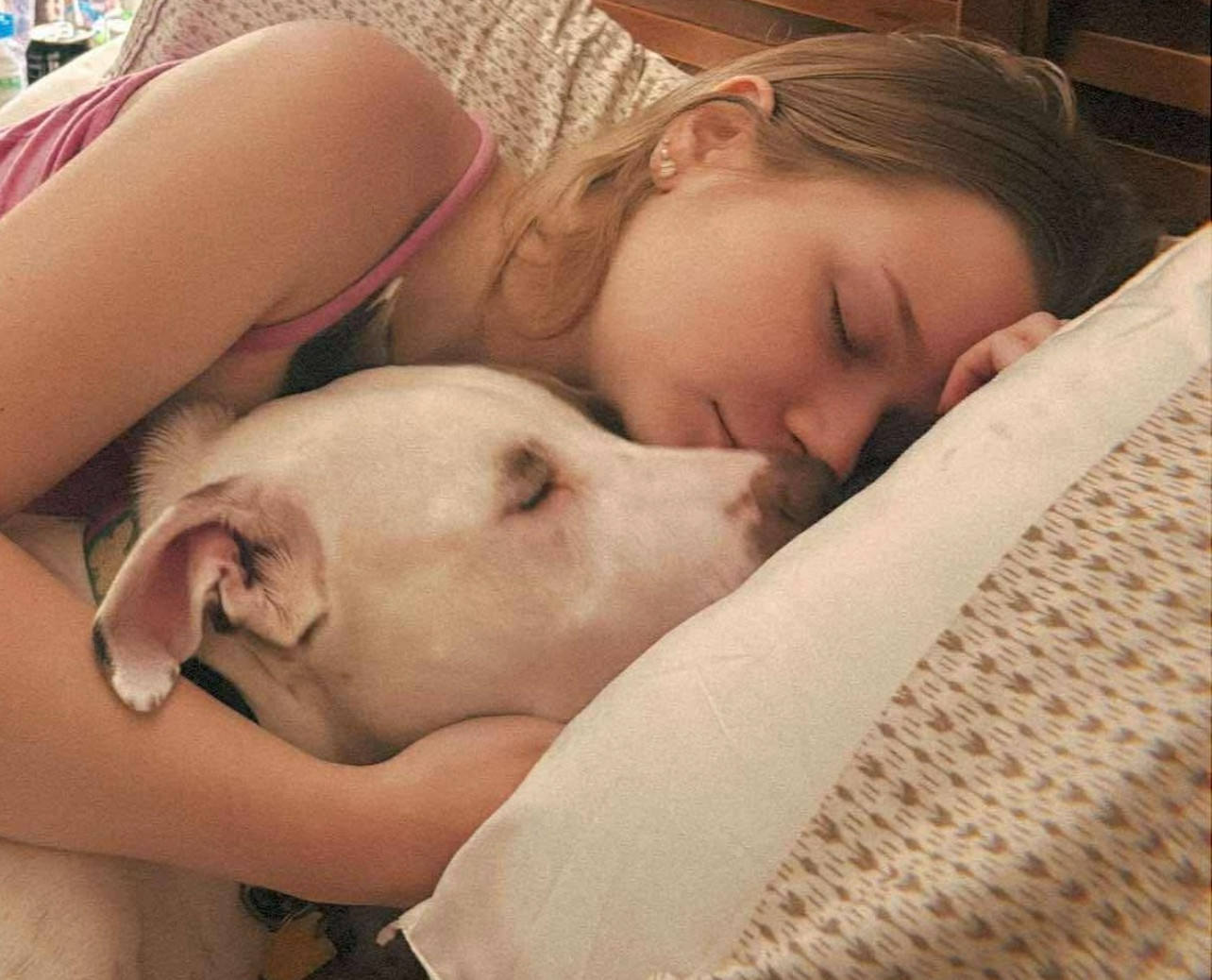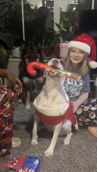 Her background was abusive. My daughter Emma, went to the shelter 2 yrs ago, fell in love, brought her home. Training and love required
