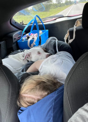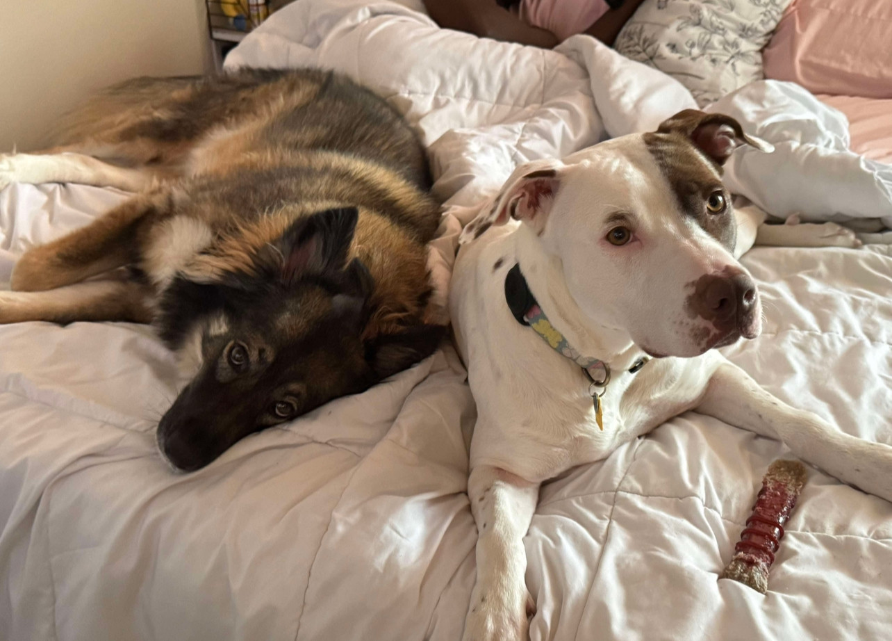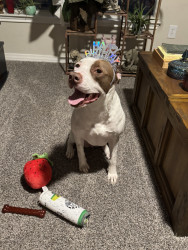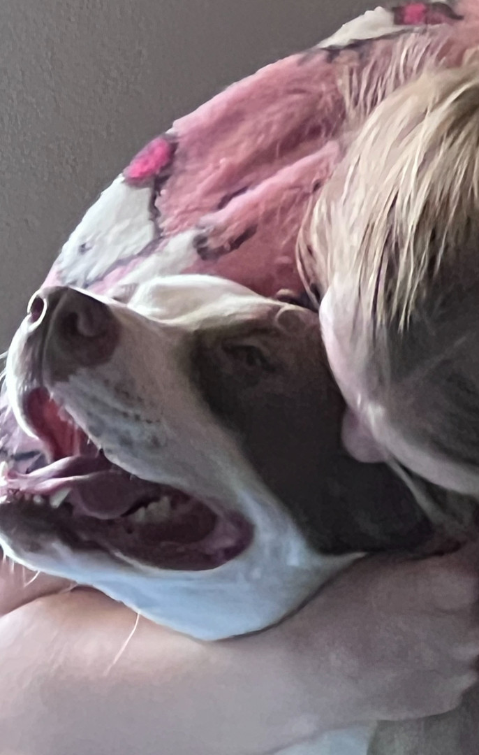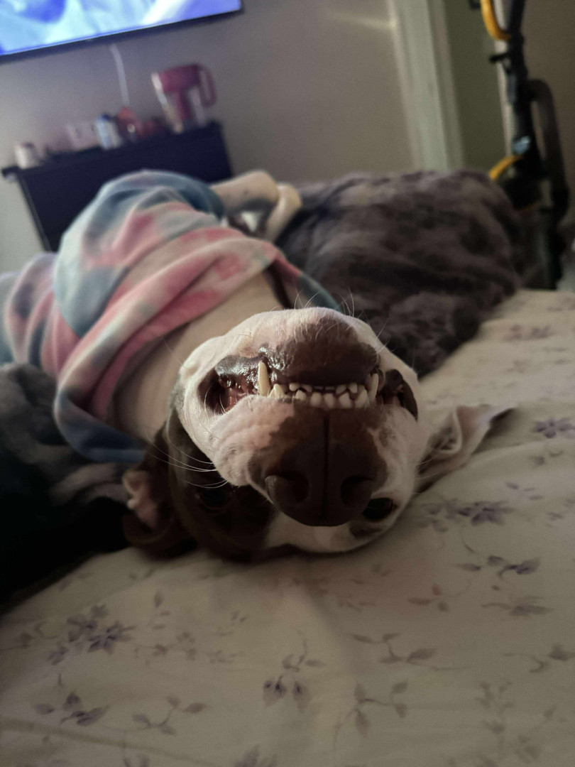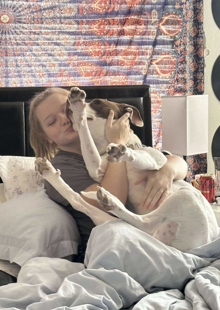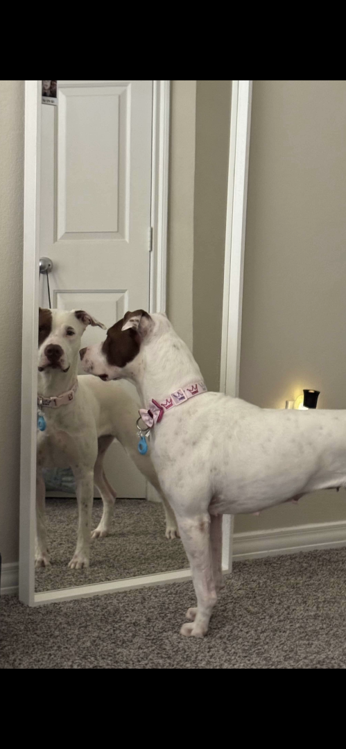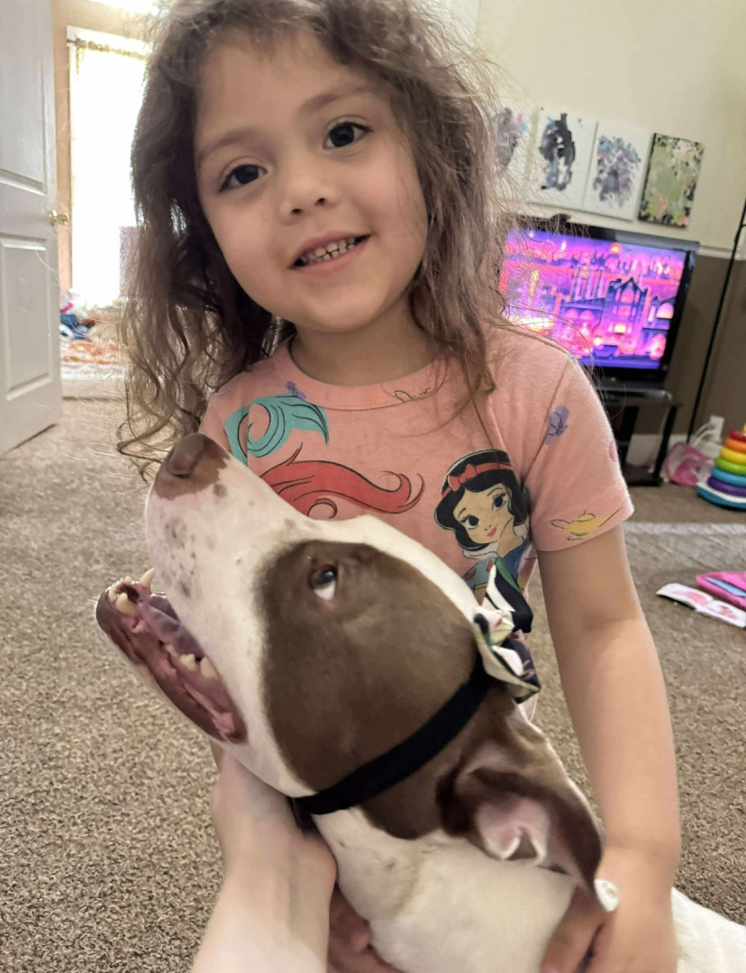 Prada had a rough life, being returned to the shelter multiple times, and abused by her previous owners. Despite all of that she is still a sweet, happy girl. She loves everyone but mostly her sister and her mommy.